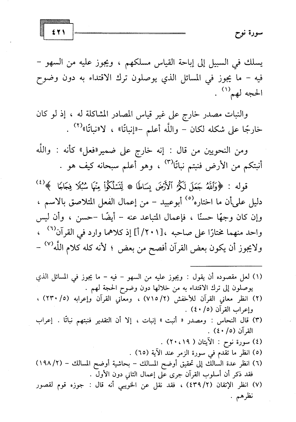 قوله: (وَاللَّهُ جَعَلَ لَكُمُ الْأَرْضَ بِسَاطًا (19) لِتَسْلُكُوا مِنْهَا سُبُلًا فِجَاجًا (20)