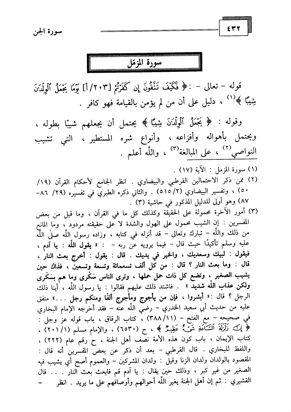 قوله - تعالى -: فَكَيْفَ تَتَّقُونَ إِنْ كَفَرْتُمْ يَوْمًا يَجْعَلُ الْوِلْدَانَ شِيبًا (17)