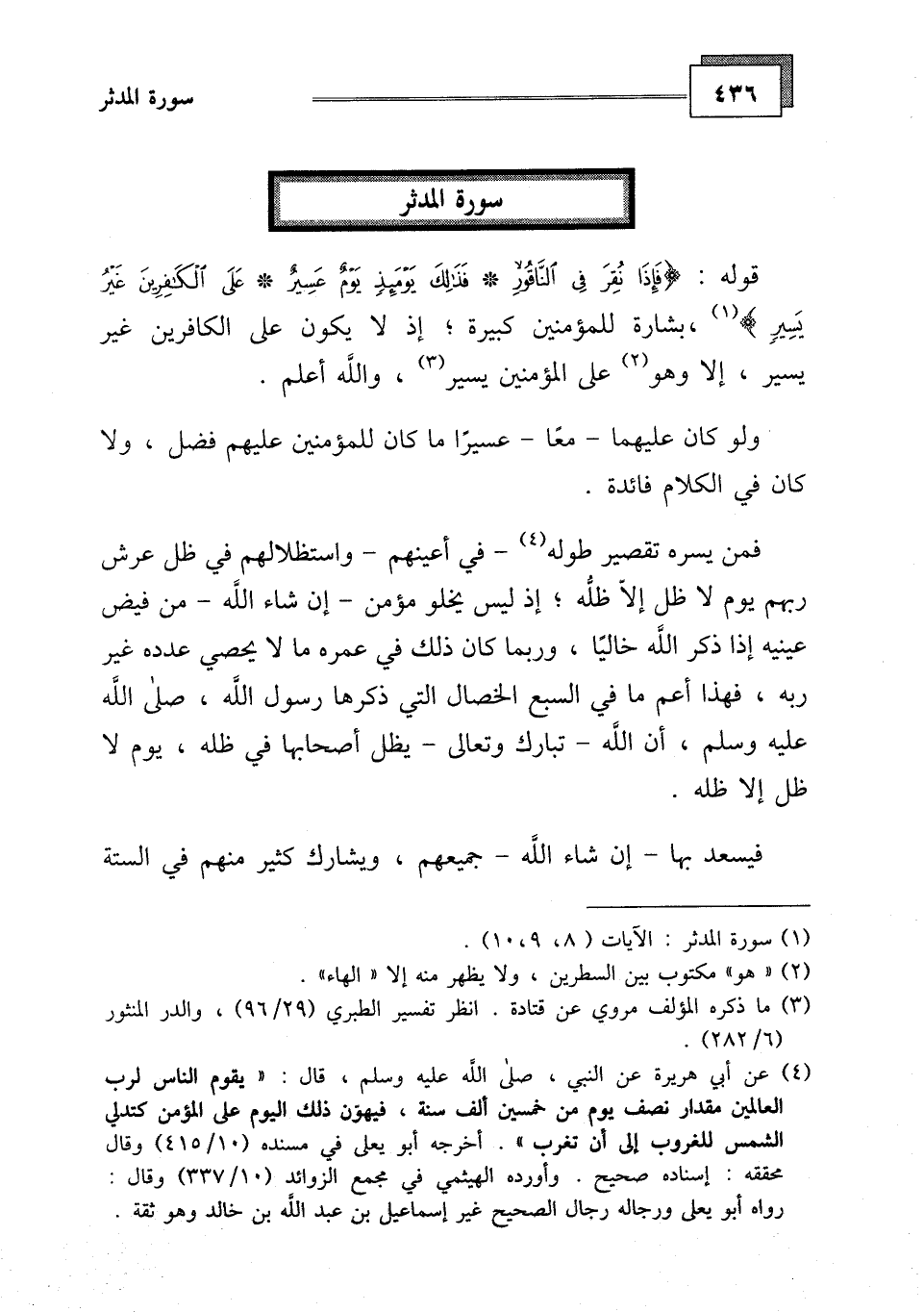 فمن يسره تقصير طوله - في أعينهم - واستظلالهم في ظل عرش