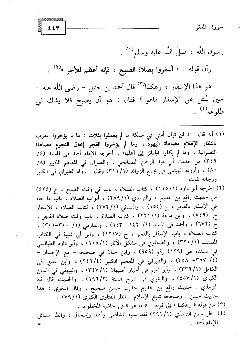 وأن قوله: " أسفروا بصلاة الصبح، فإنه أعظم للأجر ".
