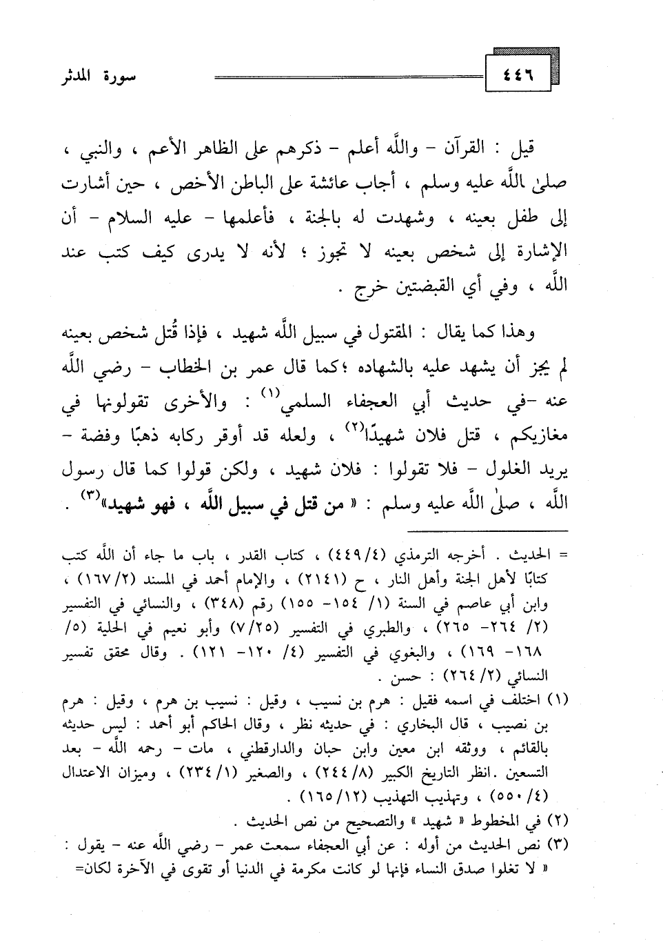 الله، صلى الله عليه وسلم: " من قتل في سبيل الله، فهو شهيد".