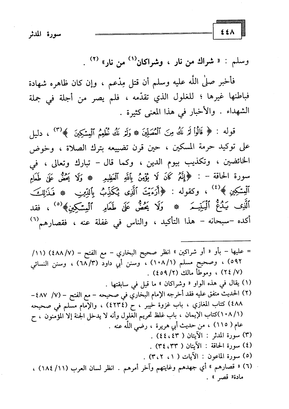 قوله: (قَالُوا لَمْ نَكُ مِنَ الْمُصَلِّينَ (43) وَلَمْ نَكُ نُطْعِمُ الْمِسْكِينَ (44) .