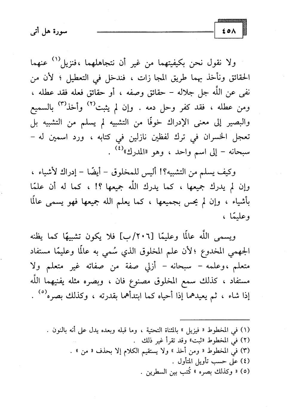 وكيف يسلم من التشبيه؟! أليس للمخلوق - أيضاً - إدراك لأشياء.