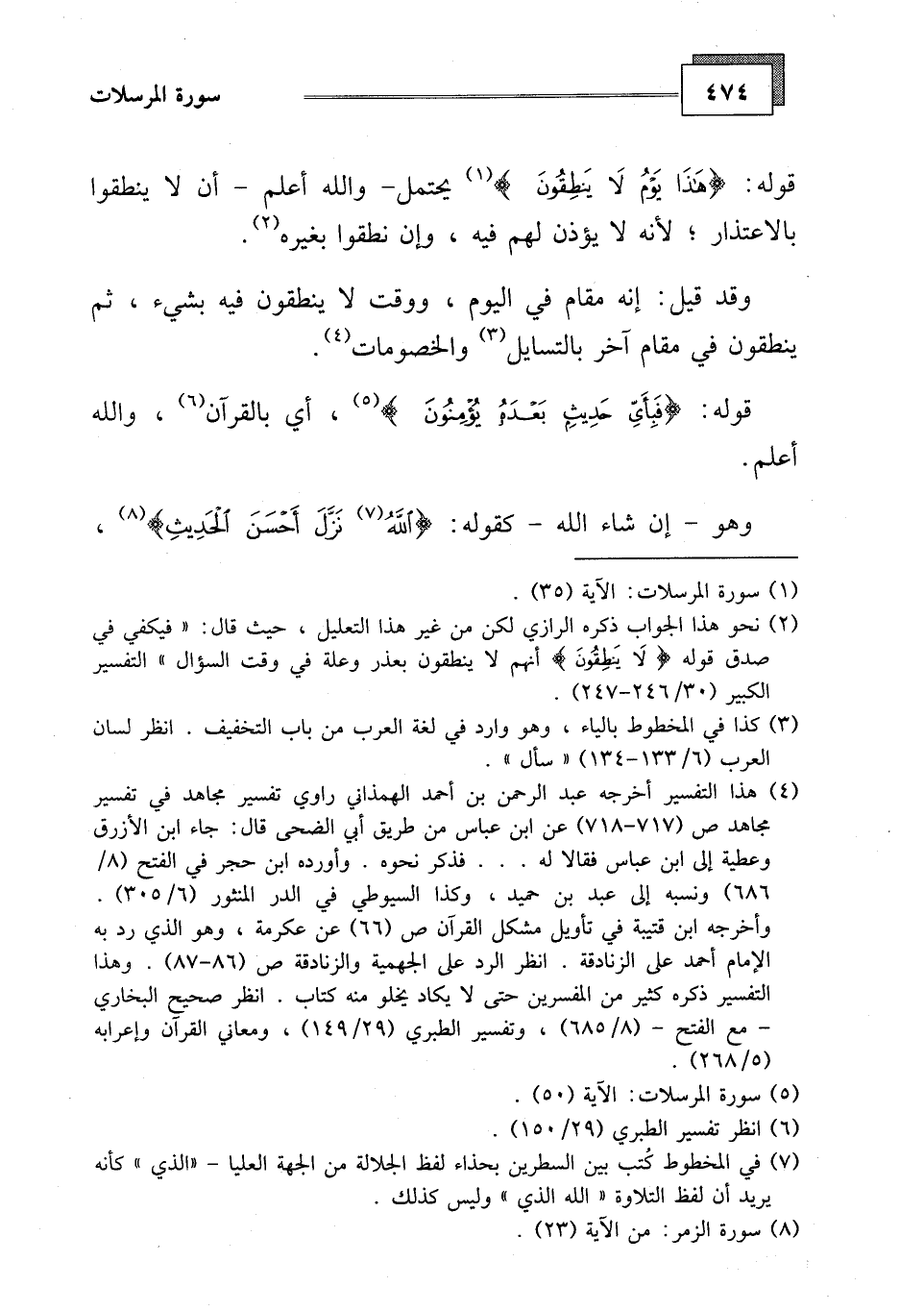 قوله: (هَذَا يَوْمُ لَا يَنْطِقُونَ (35)