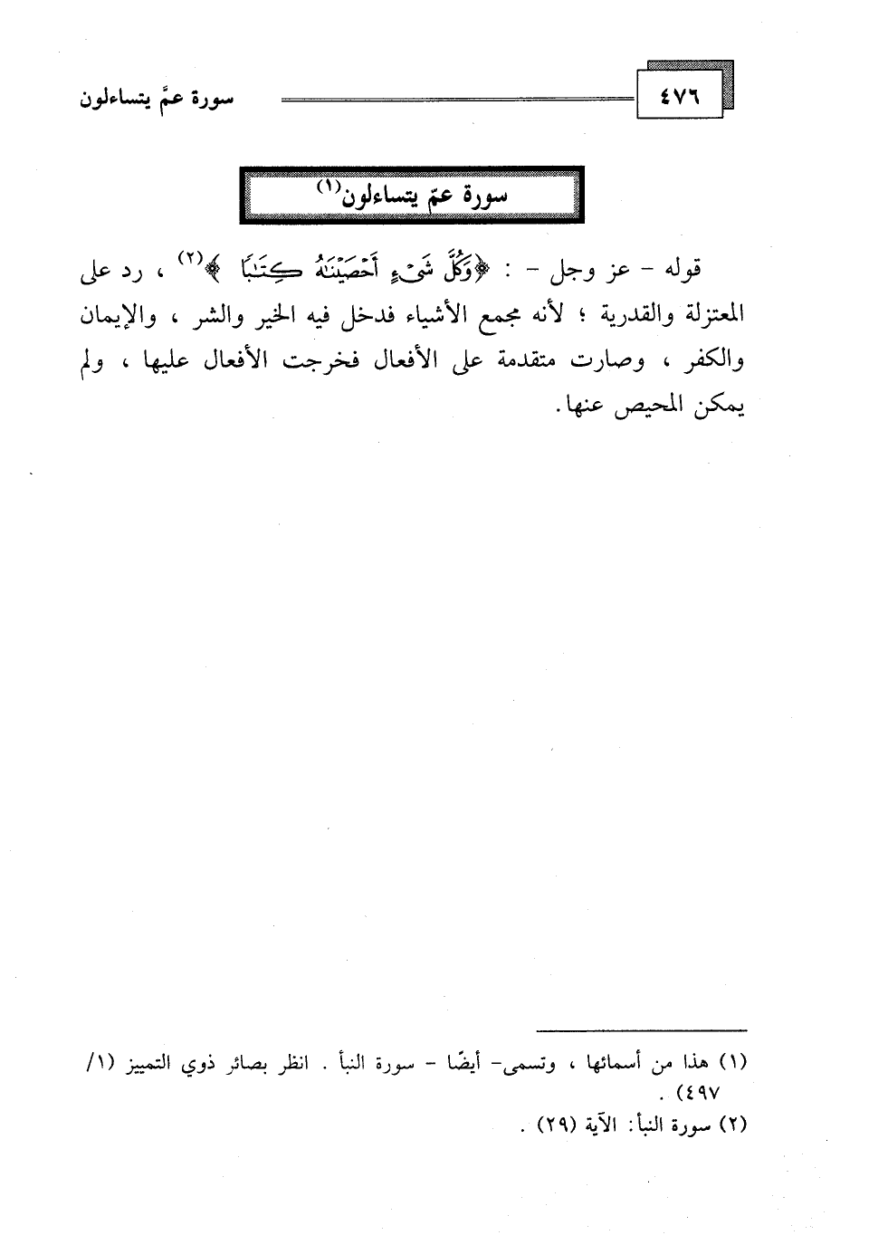 قوله عز وجل: (وَكُلَّ شَيْءٍ أَحْصَيْنَاهُ كِتَابًا (29)