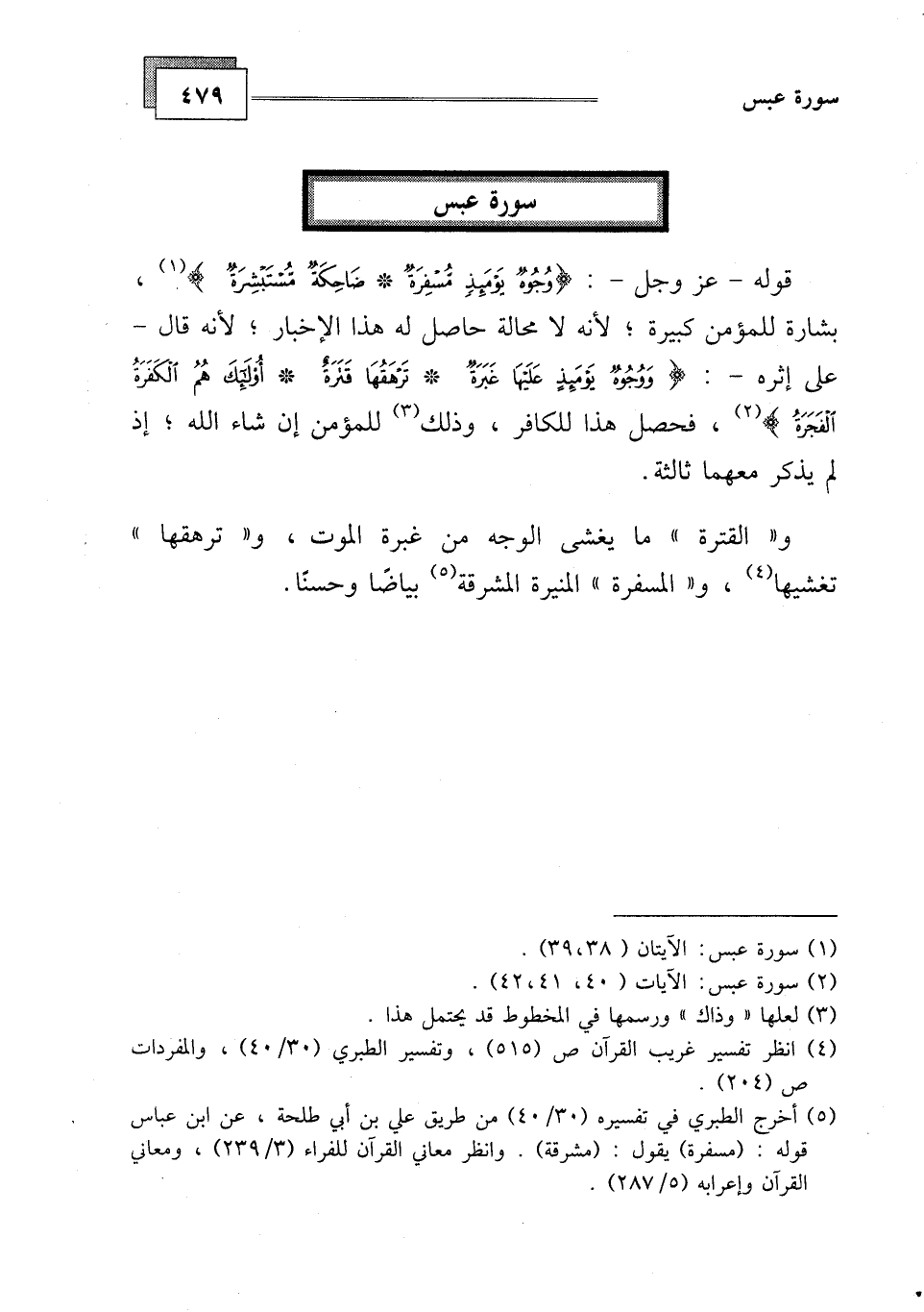 على إثره -: (وَوُجُوهٌ يَوْمَئِذٍ عَلَيْهَا غَبَرَةٌ (40) تَرْهَقُهَا قَتَرَةٌ (41) أُولَئِكَ هُمُ الْكَفَرَةُ الْفَجَرَةُ (42)