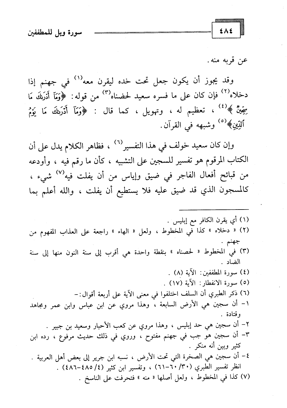 دخلاه فإن كان على ما فسره سعيد لحضناه من قوله: (وَمَا أَدْرَاكَ مَا سِجِّينٌ (8) ، تعظيم له، وتهويل، كما قال: @وَمَا أَدْرَاكَ مَا يَومُ الدِّينِ)