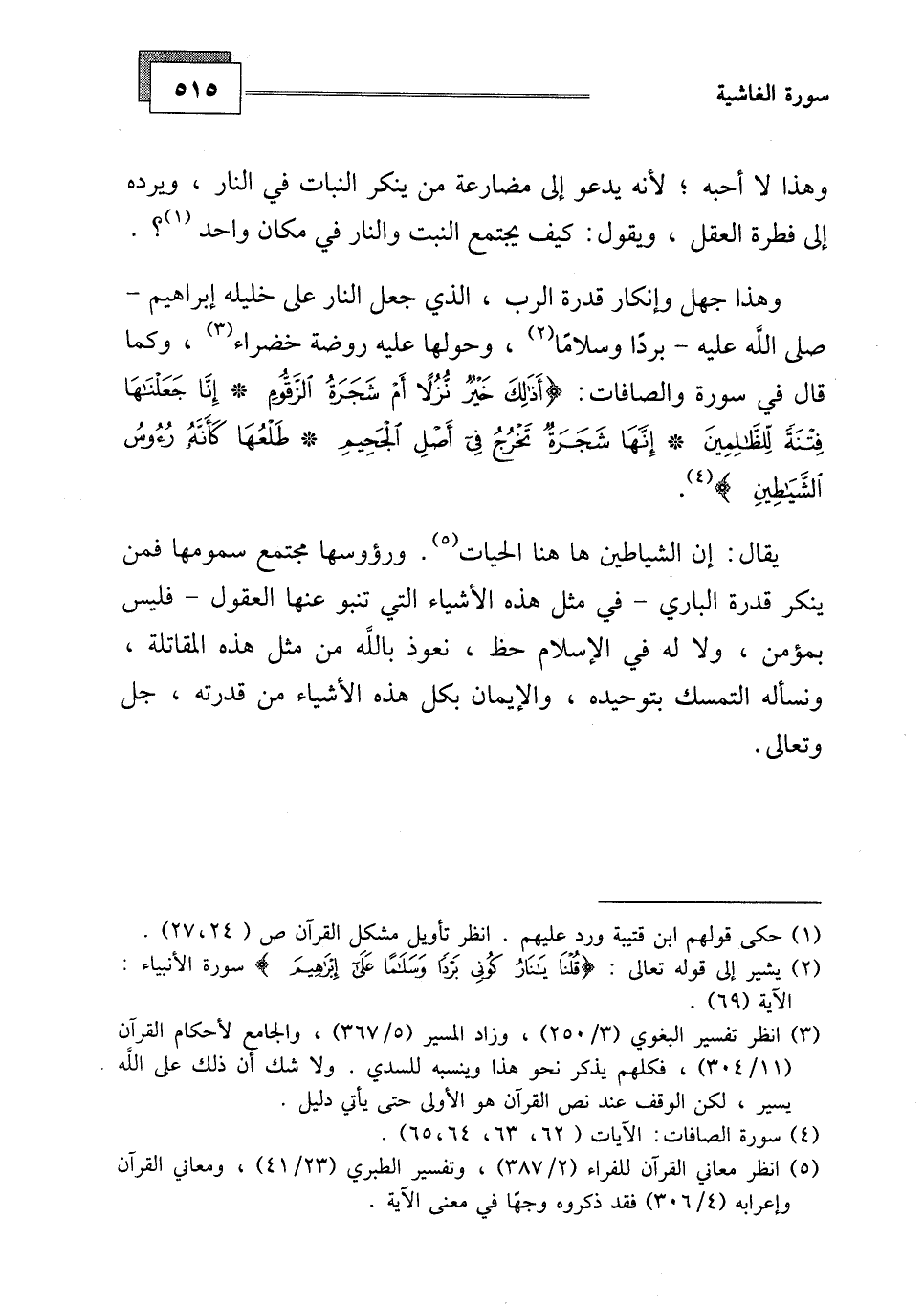 قال في سورة والصافات: (أَذَلِكَ خَيْرٌ نُزُلًا أَمْ شَجَرَةُ الزَّقُّومِ (62) إِنَّا جَعَلْنَاهَا فِتْنَةً لِلظَّالِمِينَ (63) إِنَّهَا شَجَرَةٌ تَخْرُجُ فِي أَصْلِ الْجَحِيمِ (64) طَلْعُهَا كَأَنَّهُ رُءُوسُ الشَّيَاطِينِ (65) .