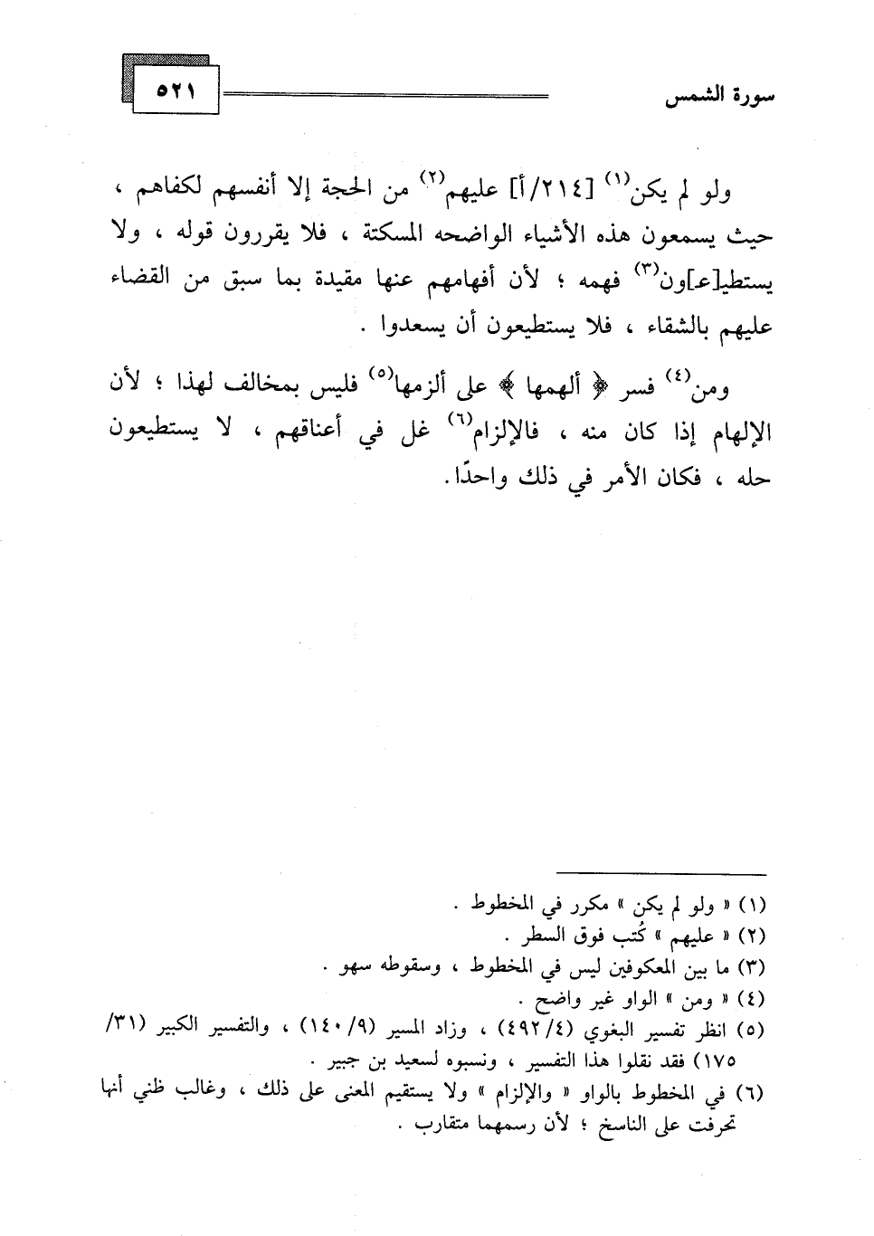 ومن فسر (ألهمها) على ألزمها فليس بمخالف لهذا، لأن