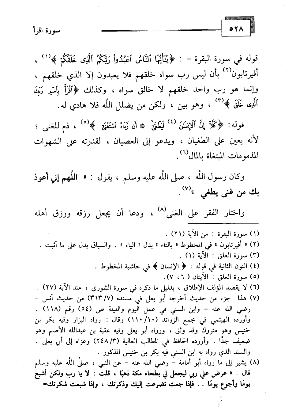 قوله: (كَلَّا إِنَّ الْإِنْسَانَ لَيَطْغَى (6) أَنْ رَآهُ اسْتَغْنَى (7) .