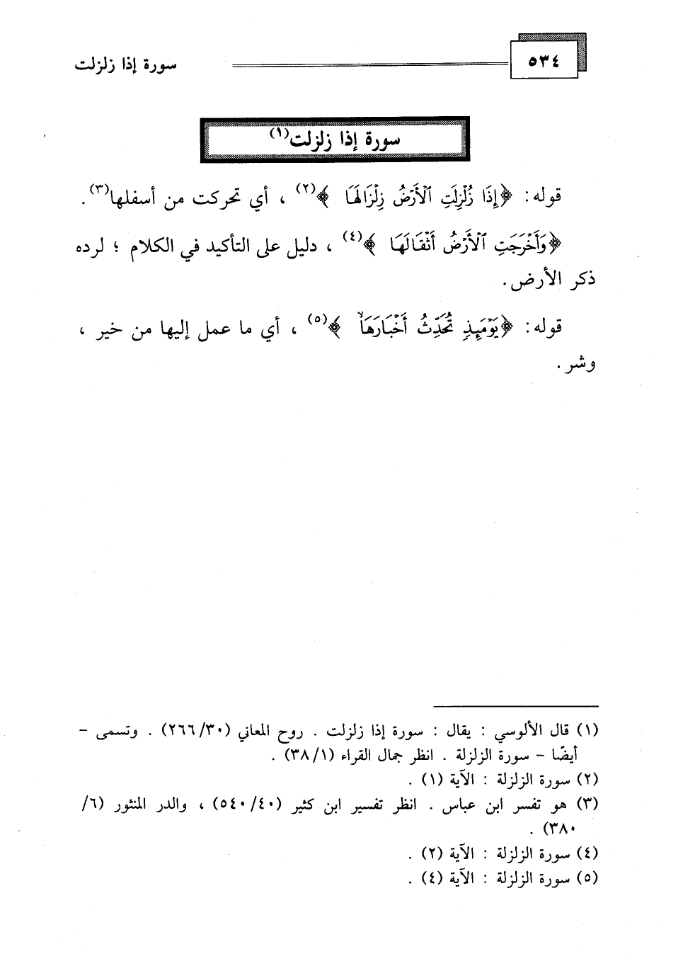 قوله: (إِذَا زُلْزِلَتِ الْأَرْضُ زِلْزَالَهَا (1)