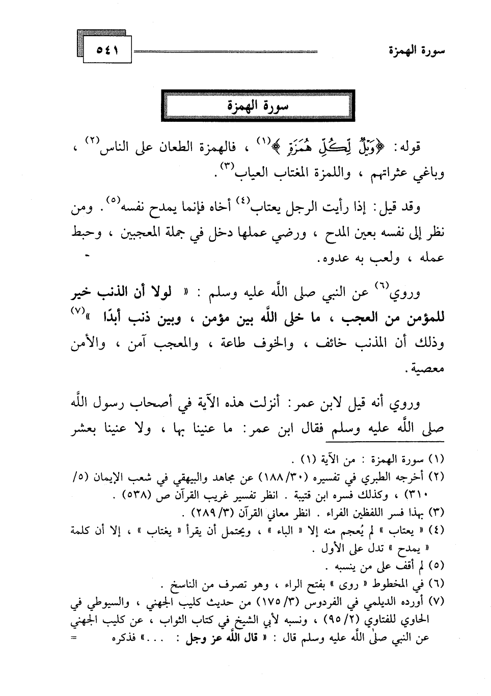 قوله: (وَيْلٌ لِكُلِّ هُمَزَةٍ لُمَزَةٍ (1) .