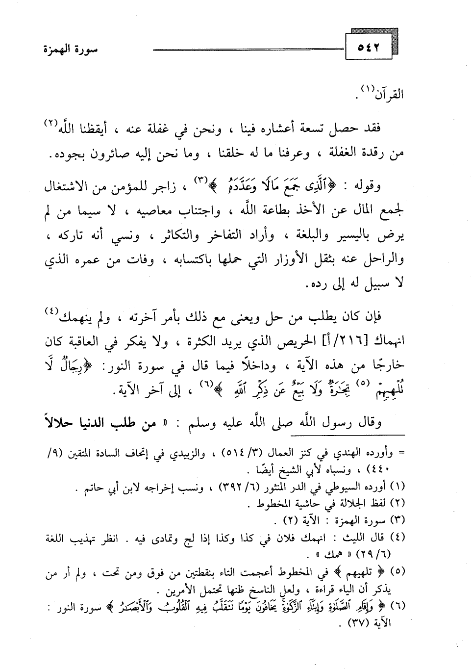 وقوله: (الَّذِي جَمَعَ مَالًا وَعَدَّدَهُ (2)