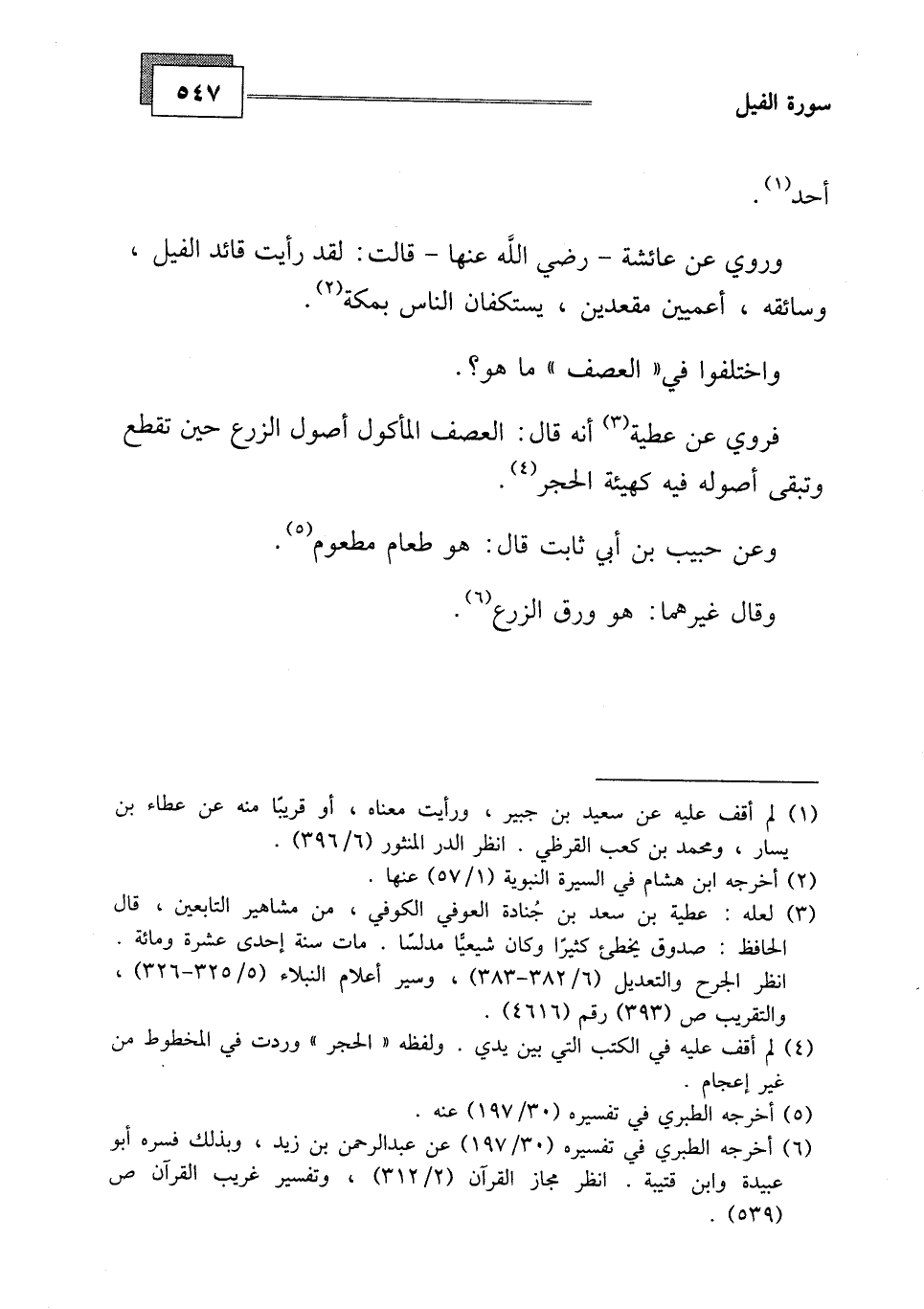 واختلفوا في " العصف " ما هو، فروي عن عطية أنه قال: العصف المأكول أصول الزرع حين تقطع