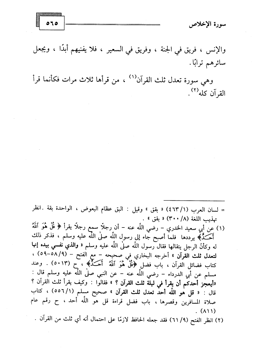 وهي سورة تعدل ثلث القرآن، من قرأها ثلاث مرات فكأنما قرأ القرآن كله.