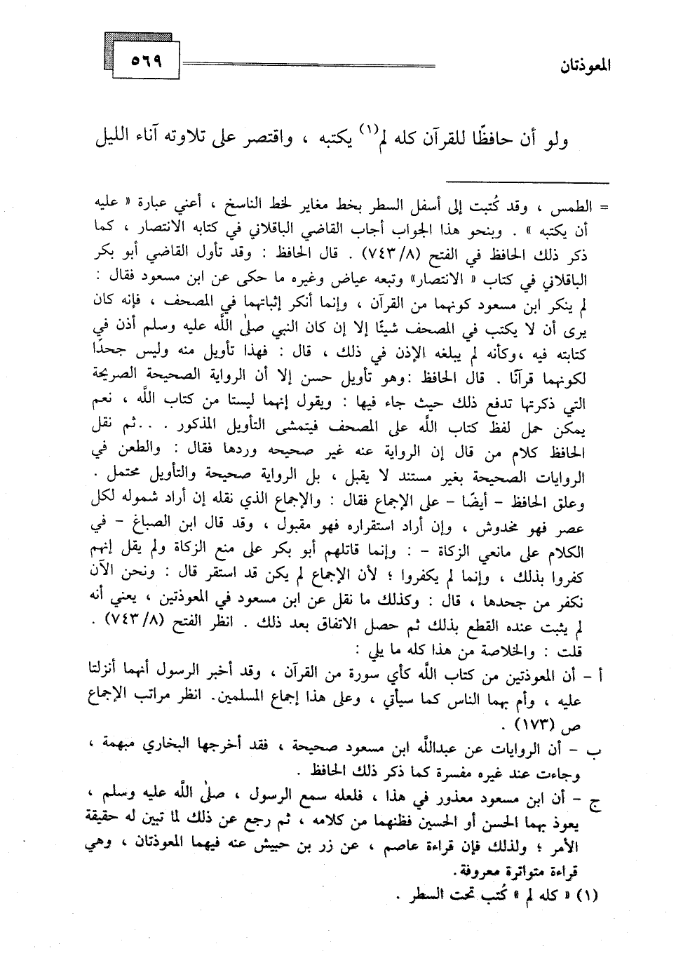 ولو أن حافطا للقرآن كله لم يكتبه، واقتصر على تلاوته آناء الليل