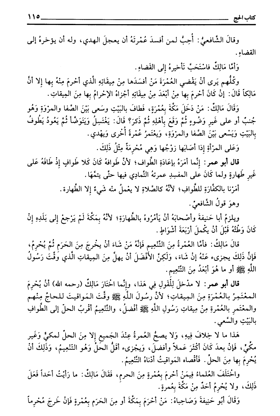 وَكُلُّهُمْ يَرَى أَنْ يَقْضِيَ الْعُمْرَةَ مَنْ أَفْسَدَهَا مِنْ مِيقَاتِهِ الَّذِي أَحْرَمَ مِنْهُ بِهَا إِلَّا أَنَّ مَالِكًا قَالَ إِنْ كَانَ أَحْرَمَ بِهَا مِنْ أَبْعَدَ مِنْ مِيقَاتِهِ أَجْزَاهُ الْإِحْرَامُ بِهَا مِنَ الْمِيقَاتِ