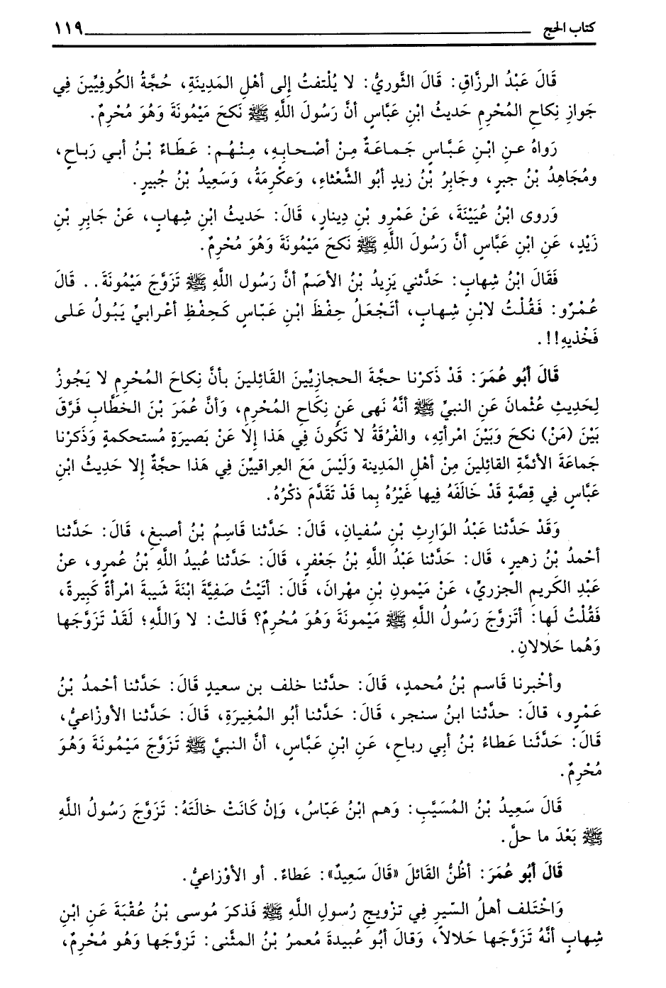 قال عبد الرزاق قال الثَّوْرِيُّ لَا يُلْتَفَتُ إِلَى أَهْلِ الْمَدِينَةِ حُجَّةُ الكوفيين في جواز نكاح المحرم حديث بْنِ عَبَّاسٍ أَنَّ رَسُولَ اللَّهِ صَلَّى اللَّهُ عَلَيْهِ وَسَلَّمَ نَكَحَ مَيْمُونَةَ وَهُوَ مُحْرِمٌ