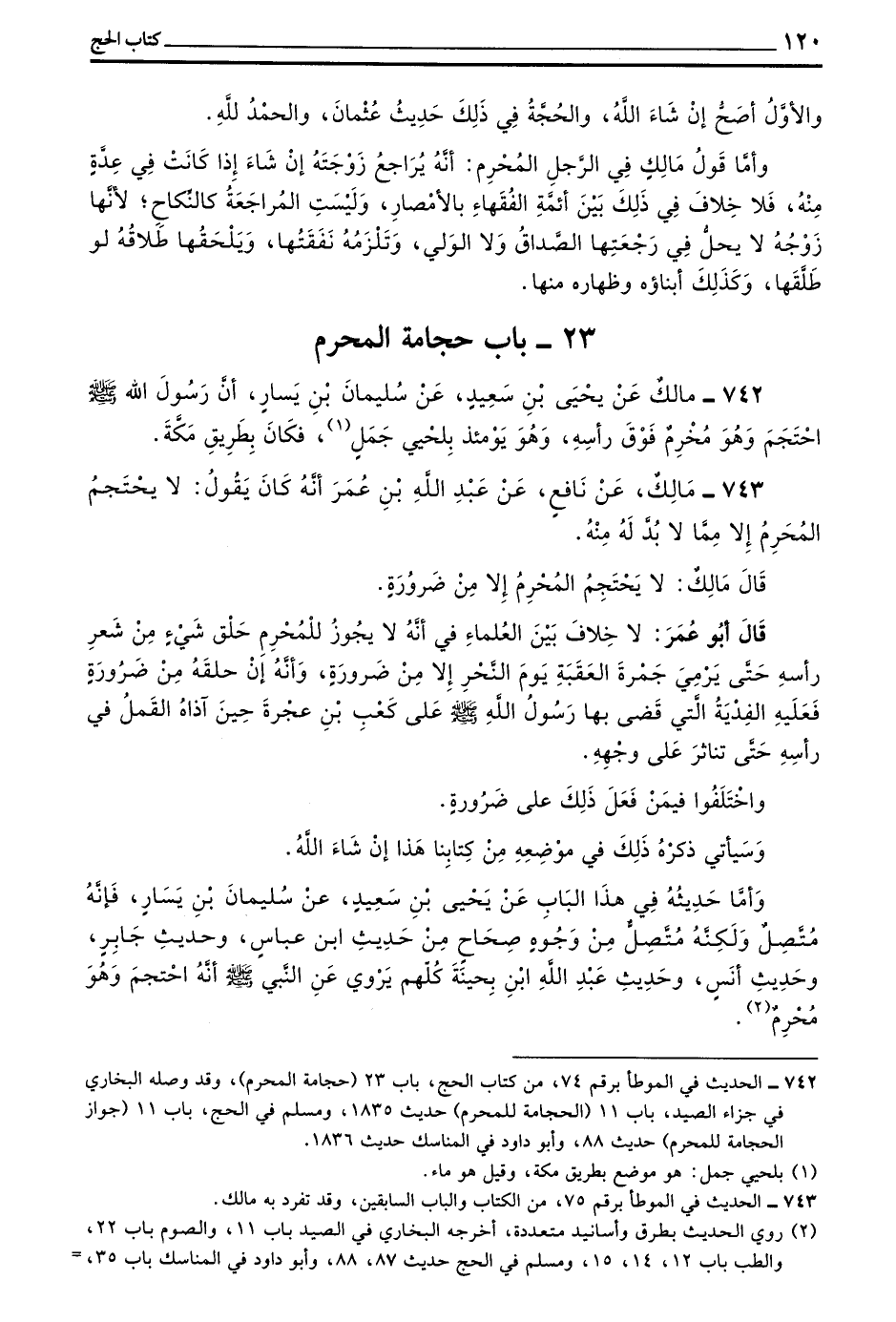 743 - مَالِكٌ عَنْ نَافِعٍ عَنْ عَبْدِ اللَّهِ بْنِ عُمَرَ أَنَّهُ كَانَ يَقُولُ لَا يَحْتَجِمُ الْمُحْرِمُ إِلَّا مِمَّا لَا بُدَّ لَهُ مِنْهُ