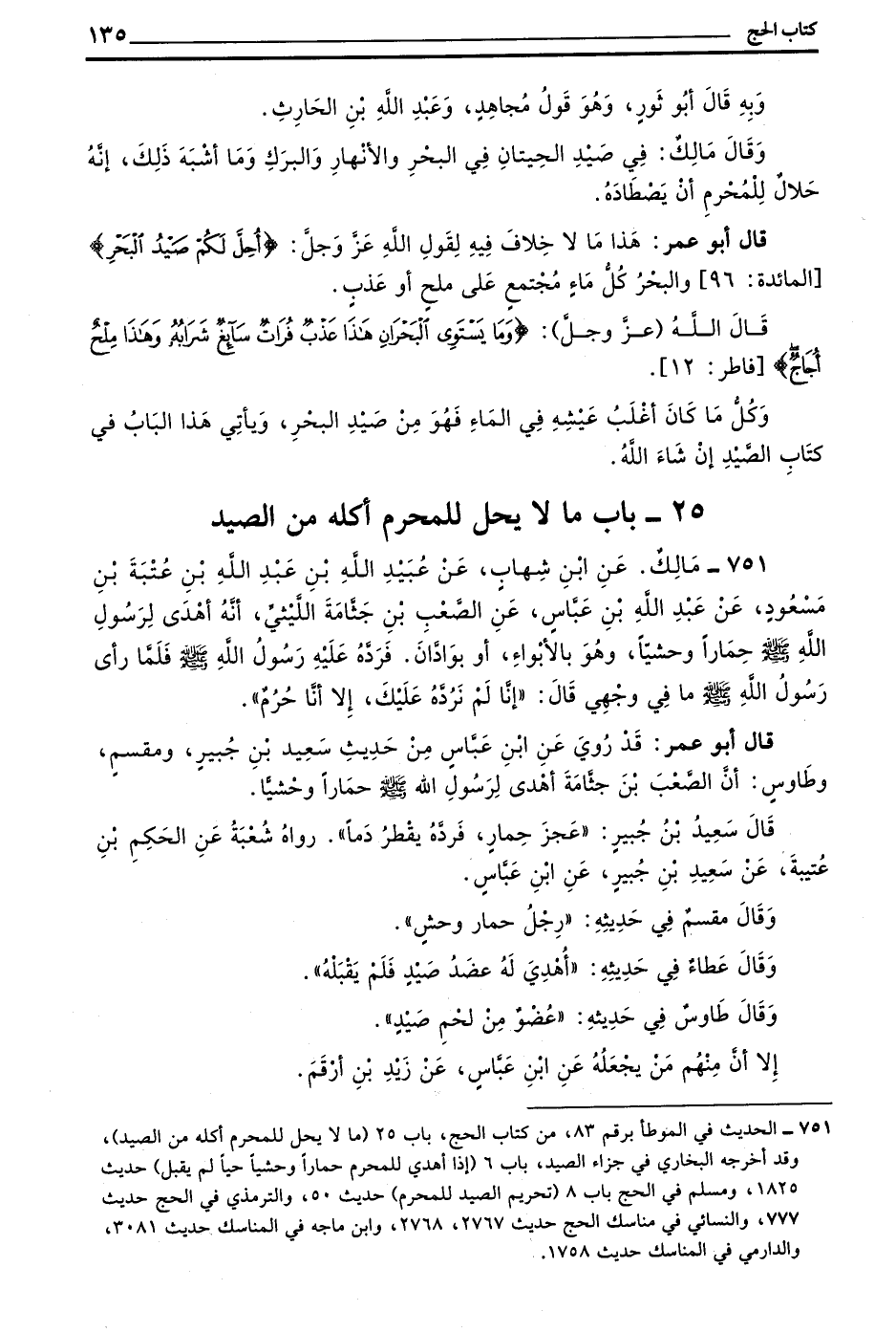 751 - مَالِكٌ عن بن شِهَابٍ عَنْ عُبَيْدِ اللَّهِ بْنِ عَبْدِ اللَّهِ بْنِ عُتْبَةَ بْنِ مَسْعُودٍ عَنْ عَبْدِ اللَّهِ بْنِ عَبَّاسٍ عَنِ الصَّعْبِ بْنِ جَثَّامَةَ اللَّيْثِيِّ أنه أهدى لرسول الله صلى الله عليه وسلم حمارا وحشيا وهو بالأبواء أو بوادان فَرَدَّهُ عَلَيْهِ رَسُولَ اللَّهِ صَلَّى اللَّهُ عَلَيْهِ وَسَلَّمَ فَلَمَّا رَأَى رَسُولَ اللَّهِ صَلَّى اللَّهُ عَلَيْهِ وَسَلَّمَ مَا فِي وَجْهِي قَالَ إِنَّا لَمْ نَرُدُّهُ عَلَيْكَ إِلَّا أَنَّا حُرُمٌ