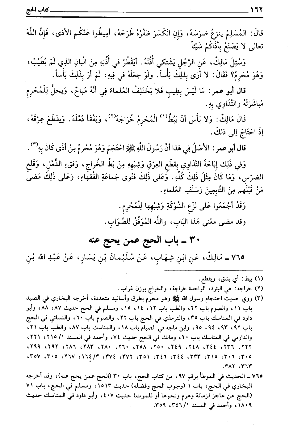 قَالَ مَالِكٌ وَلَا بَأْسَ أَنْ يَبُطَّ الْمُحْرِمُ خُرَاجَهُ وَيَفْقَأَ دُمَّلَهُ وَيَقْطَعَ عِرْقَهُ إِذَا احْتَاجَ إِلَى ذَلِكَ