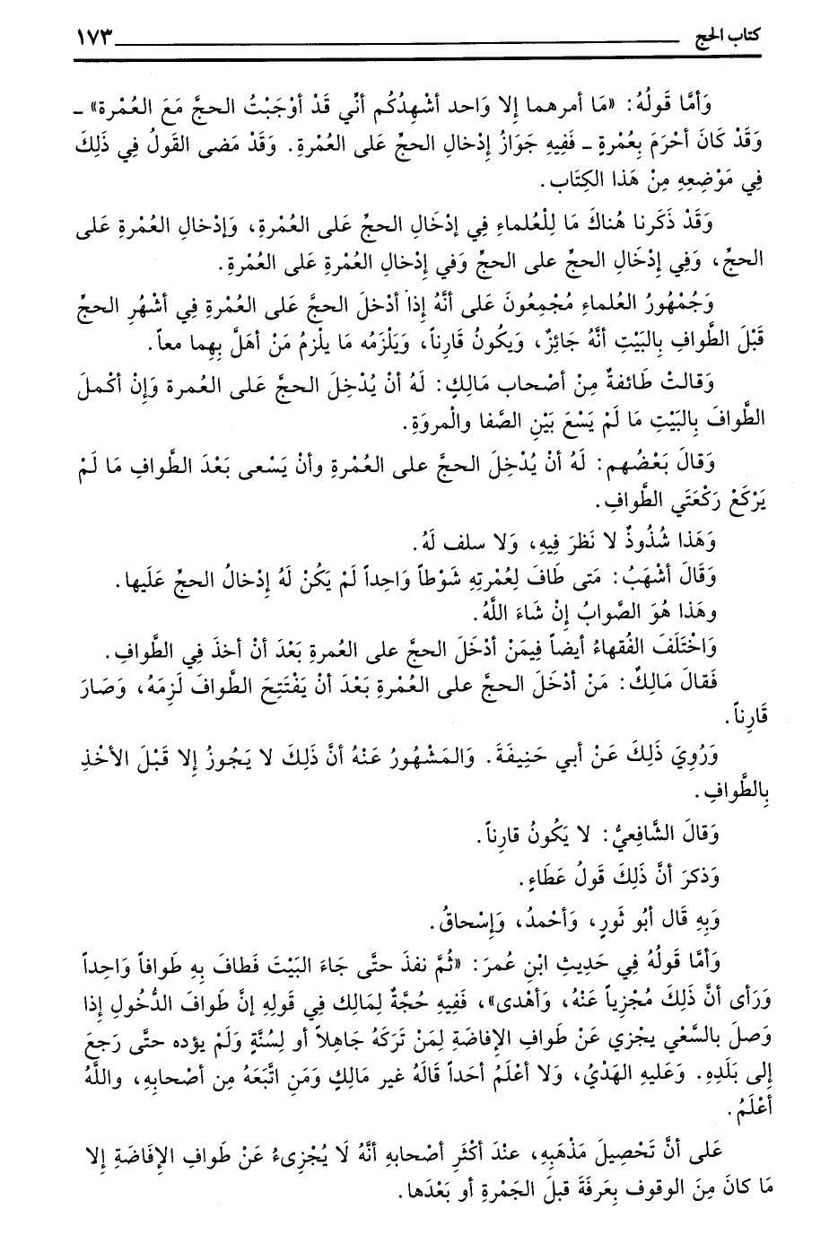 وَقَدْ ذَكَرْنَا هُنَاكَ مَا لِلْعُلَمَاءِ فِي إِدْخَالِ الْحَجِّ عَلَى الْعُمْرَةِ وَإِدْخَالِ الْعُمْرَةِ عَلَى الْحَجِّ وَفِي إِدْخَالِ الْحَجِّ عَلَى الْحَجِّ وَفِي إِدْخَالِ الْعُمْرَةِ عَلَى الْعُمْرَةِ وَجُمْهُورُ الْعُلَمَاءِ مُجْمِعُونَ عَلَى أَنَّهُ إِذَا أَدْخَلَ الْحَجَّ عَلَى الْعُمْرَةِ فِي أَشْهُرِ الْحَجِّ قَبْلَ الطَّوَافِ بِالْبَيْتِ أَنَّهُ جَائِزٌ وَيَكُونُ قَارِنًا وَيَلْزَمُهُ مَا يَلْزَمُ مَنْ أَهَلَّ بِهِمَا مَعًا