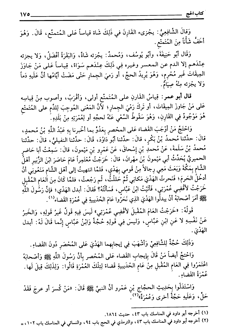 قَالَ أَبُو عُمَرَ قِيَاسُ الْقَارِنِ عَلَى الْمُتَمَتِّعِ أَوْلَى وَأَقْرَبُ وَأَصْوَبُ مِنْ قِيَاسِهِ عَلَى مَنْ جَاوَزَ الْمِيقَاتَ أَوْ تَرَكَ رَمْيَ الْجِمَارِ لِأَنَّ الْمَعْنَى الْمُوجِبَ للدم عَلَى الْمُتَمَتِّعِ هُوَ مَوْجُودٌ فِي الْقَارِنِ وَهُوَ سُقُوطُ السَّعْيِ عَنْهُ لِحَجِّهِ أَوْ لِعُمْرَتِهِ مِنْ بَلَدِهِ
