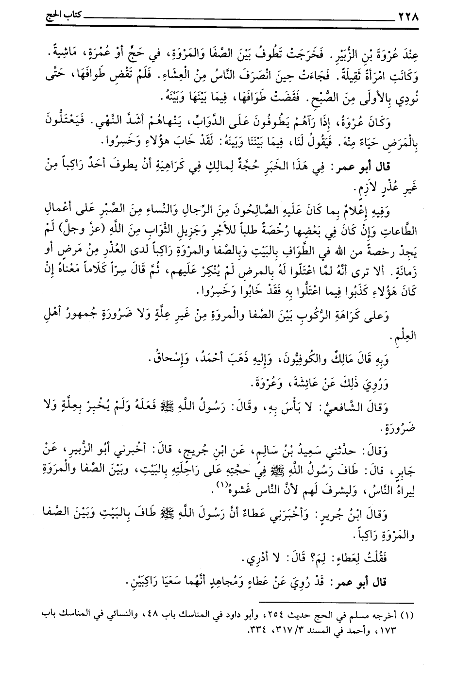 قَالَ أَبُو عُمَرَ فِي هَذَا الْخَبَرِ حُجَّةٌ لِمَالِكٍ فِي كَرَاهِيَةِ أَنْ يَطُوفَ أَحَدٌ رَاكِبًا مِنْ غَيْرِ عُذْرٍ لَازِمٍ