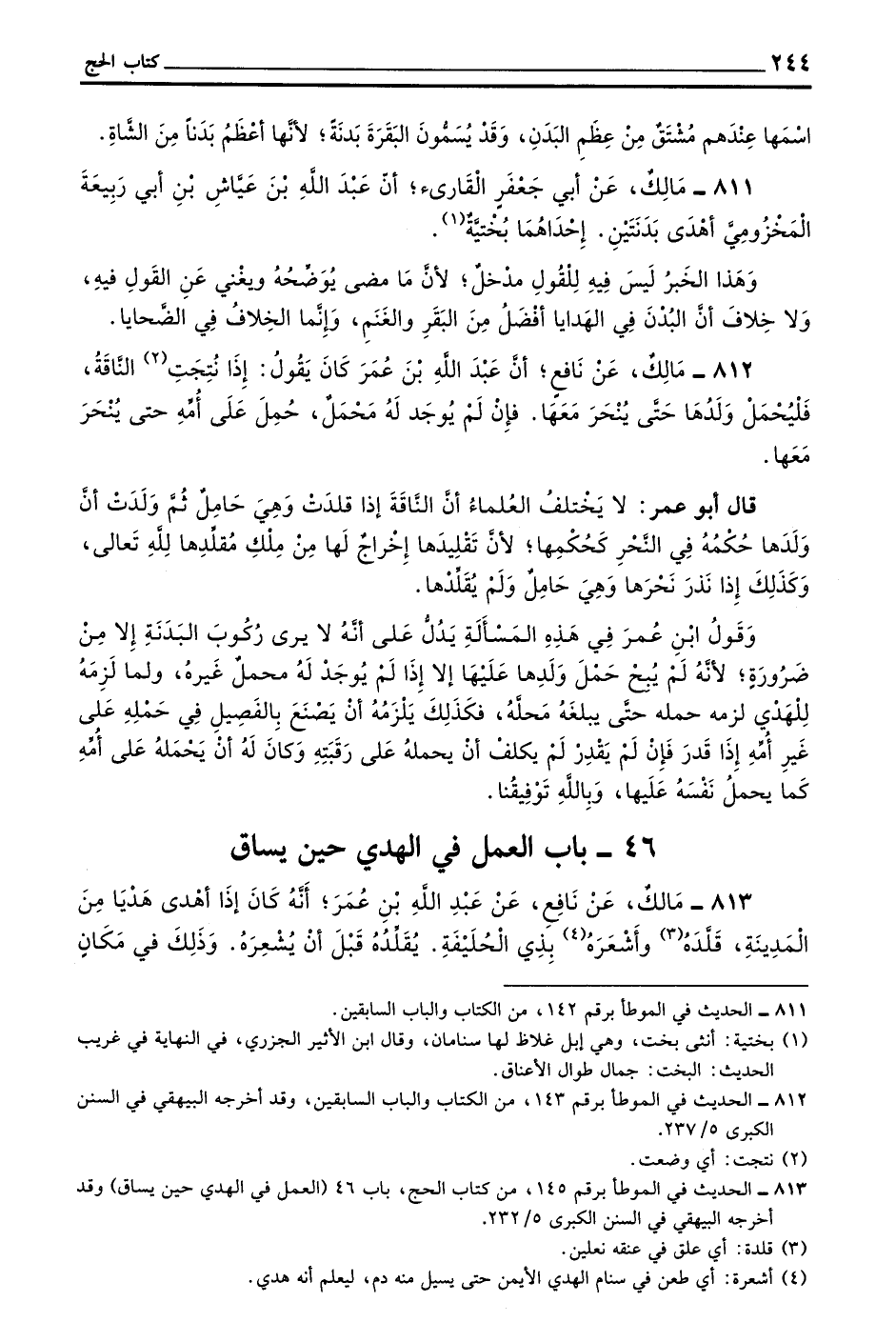 811 - مَالِكٌ عَنْ أَبِي جَعْفَرٍ الْقَارِئِ إِنَّ عَبْدَ اللَّهِ بْنَ عَيَّاشِ بْنِ أَبِي رَبِيعَةَ الْمَخْزُومِيَّ أَهْدَى بَدَنَتَيْنِ إِحْدَاهُمَا بُخْتِيَّةٌ