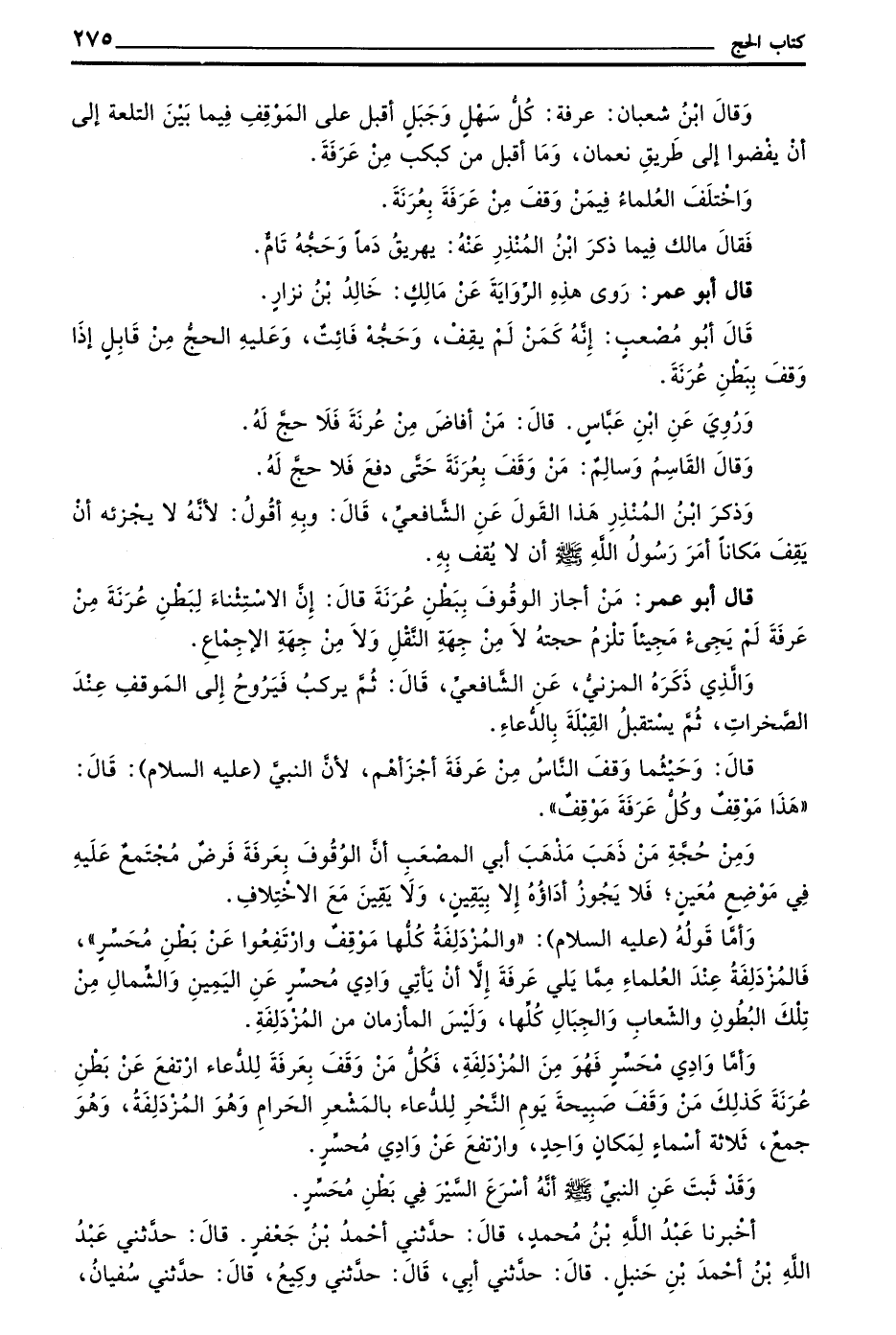 قَالَ أَبُو عُمَرَ مَنْ أَجَازَ الْوُقُوفَ بِبَطْنِ عُرَنَةَ قَالَ إِنَّ الاستثناء لبطن عرنة من عرفة لم يجيء مَجِيئًا تَلْزَمُ حُجَّتُهُ لَا مِنْ جِهَةِ النَّقْلِ وَلَا مِنْ جِهَةِ الْإِجْمَاعِ