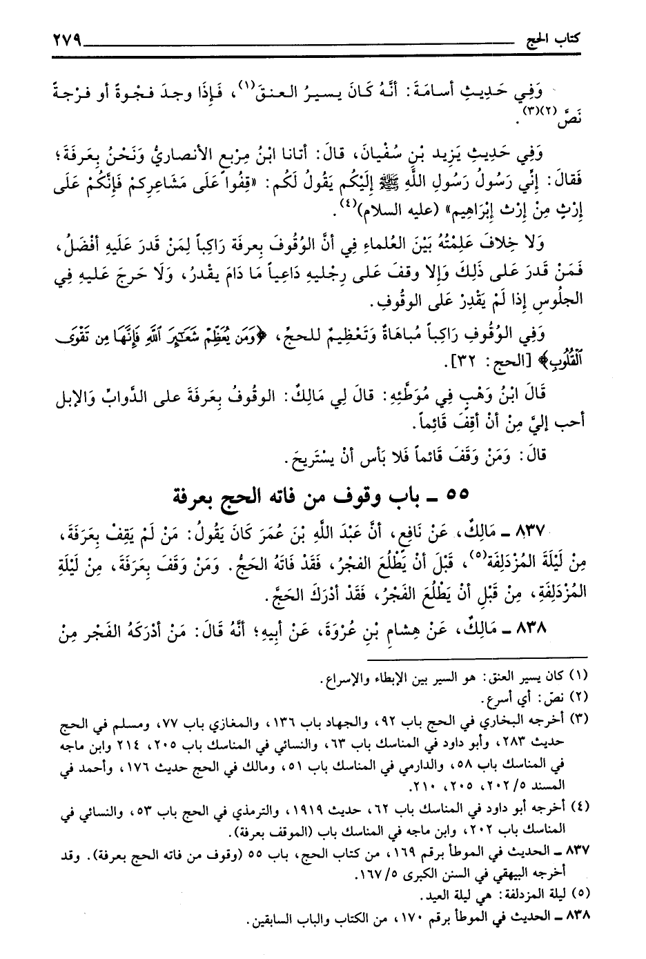 837 - مَالِكٌ عَنْ نَافِعٍ أَنَّ عَبْدَ اللَّهِ بْنَ عُمَرَ كَانَ يَقُولُ مَنْ لَمْ يَقِفْ بِعَرَفَةَ مِنْ لَيْلَةِ الْمُزْدَلِفَةِ قَبْلَ أَنْ يَطْلُعَ الْفَجْرُ فَقَدْ فَاتَهُ الْحَجُّ وَمَنْ وَقَفَ بِعَرَفَةَ مِنْ لَيْلَةِ الْمُزْدَلِفَةِ مِنْ قَبْلِ أَنْ يَطْلُعَ الْفَجْرُ فَقَدْ أَدْرَكَ الْحَجَّ
