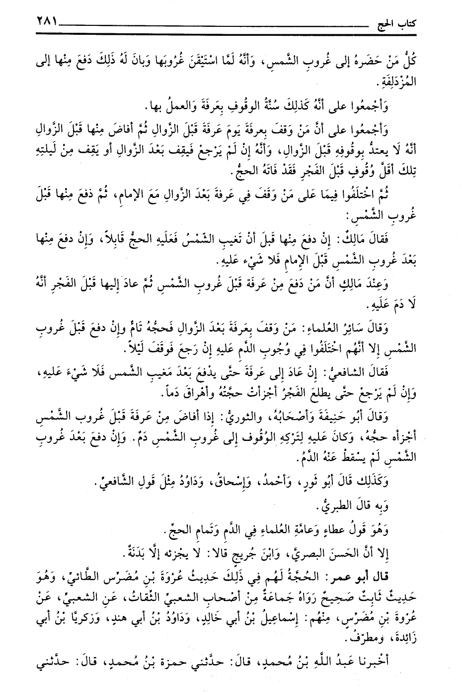 وَقَالَ سَائِرُ الْعُلَمَاءِ مَنْ وَقَفَ بِعَرَفَةَ بَعْدَ الزَّوَالِ فَحَجُّهُ تَامٌّ وَإِنْ دَفَعَ قَبْلَ غُرُوبِ الشَّمْسِ إلا إنهم اختلفوا في وجوب الد م عَلَيْهِ إِنْ رَجَعَ فَوَقَفَ لَيْلًا