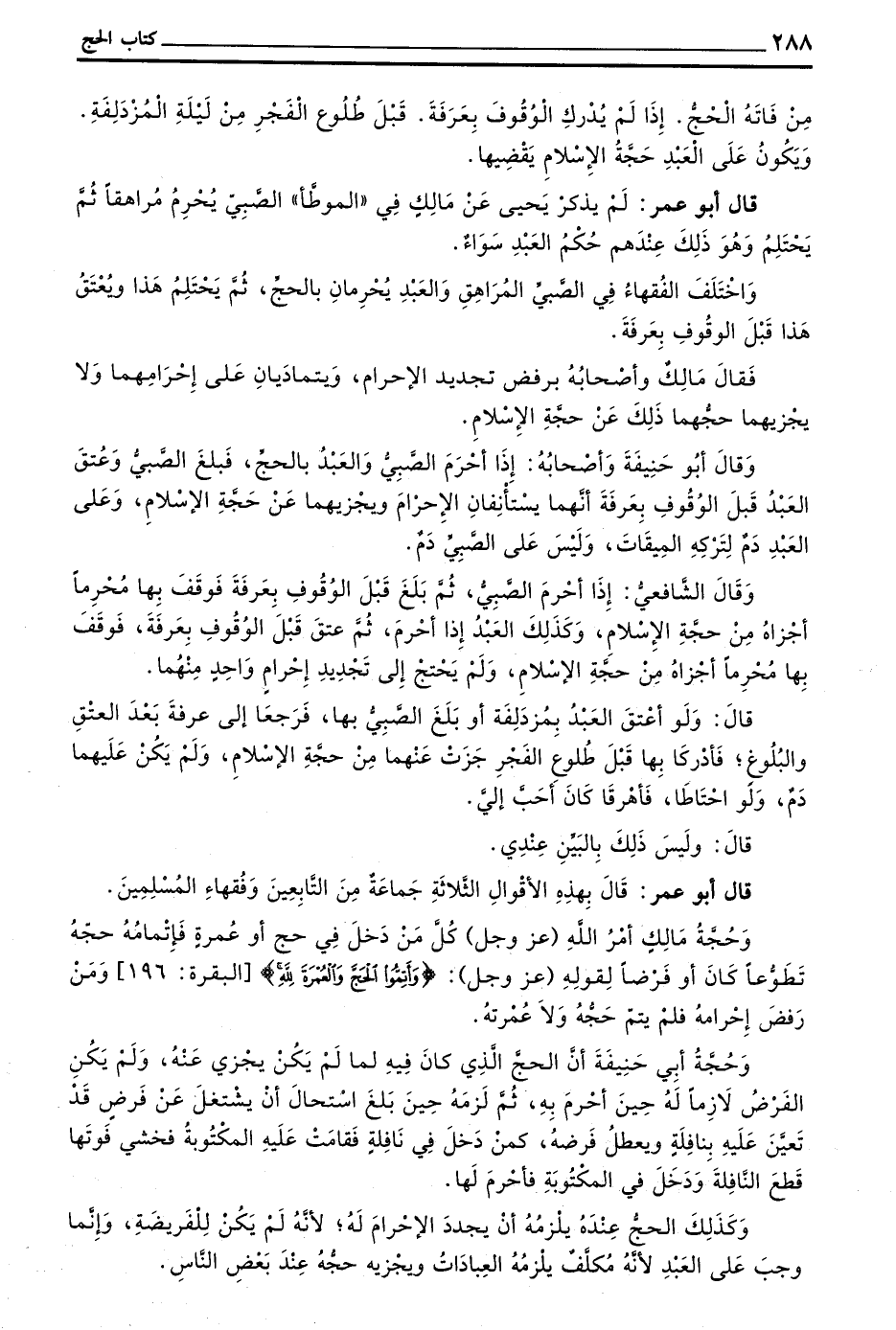 وَحُجَّةُ مَالِكٍ أَمْرُ اللَّهِ (عَزَّ وَجَلَّ) كُلَّ مَنْ دَخَلَ فِي حَجٍّ أَوْ عُمْرَةٍ فإتمامه حَجَّهُ تَطَوُّعًا كَانَ أَوْ فَرْضًا لِقَوْلِهِ (عَزَّ وجل) (وأتموا الحج والعمرة لله) البقرة 196 وَمَنْ رَفَضَ إِحْرَامَهُ فَلَمْ يَتِمَّ حَجُّهُ وَلَا عُمْرَتُهُ