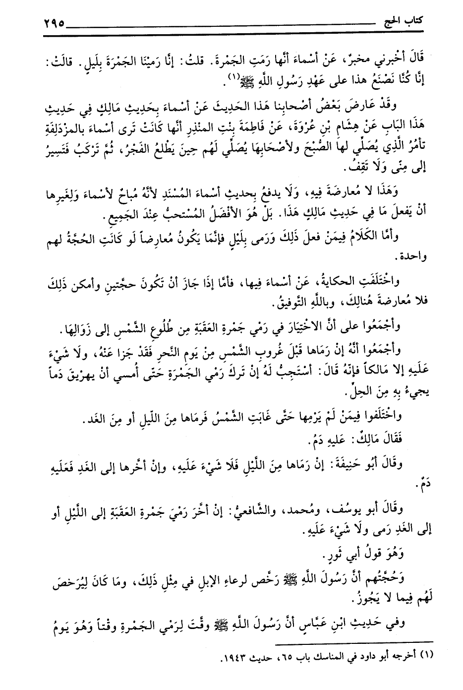 وَأَمَّا الْكَلَامُ فِيمَنْ فَعَلَ ذَلِكَ وَرَمَى بِلَيْلٍ فَإِنَّمَا يَكُونُ مُعَارِضًا لَوْ كَانَتِ الْحَجَّةُ لَهُمْ وَاحِدَةً