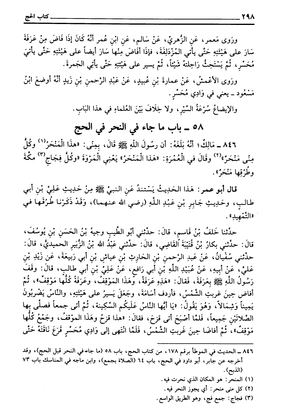 846 - مَالِكٌ أَنَّهُ بَلَغَهُ أَنَّ رَسُولَ اللَّهِ صَلَّى اللَّهُ عَلَيْهِ وَسَلَّمَ قَالَ بِمِنًى هَذَا الْمَنْحَرُ وَكُلُّ مِنًى مَنْحَرٌ وَقَالَ فِي الْعُمْرَةِ هَذَا الْمَنْحَرُ يَعْنِي الْمَرْوَةَ وَكُلُّ فِجَاجِ مَكَّةَ وَطُرُقِهَا مَنْحَرٌ
