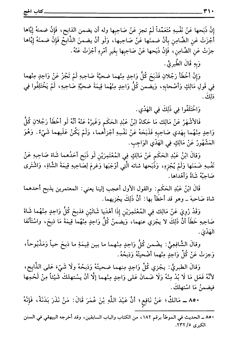 قَالَ بن عَبْدِ الْحَكَمِ وَالْقَوْلُ الْأَوَّلُ أَعْجَبُ إِلَيْنَا يَعْنِي الْمُعْتَمِرَيْنِ يَذْبَحُ أَحَدَهُمَا شَاةَ صَاحِبِهِ وَهُوَ قَدْ أَخْطَأَ بِهَا أَنَّ ذَلِكَ يُجْزِيهِمَا