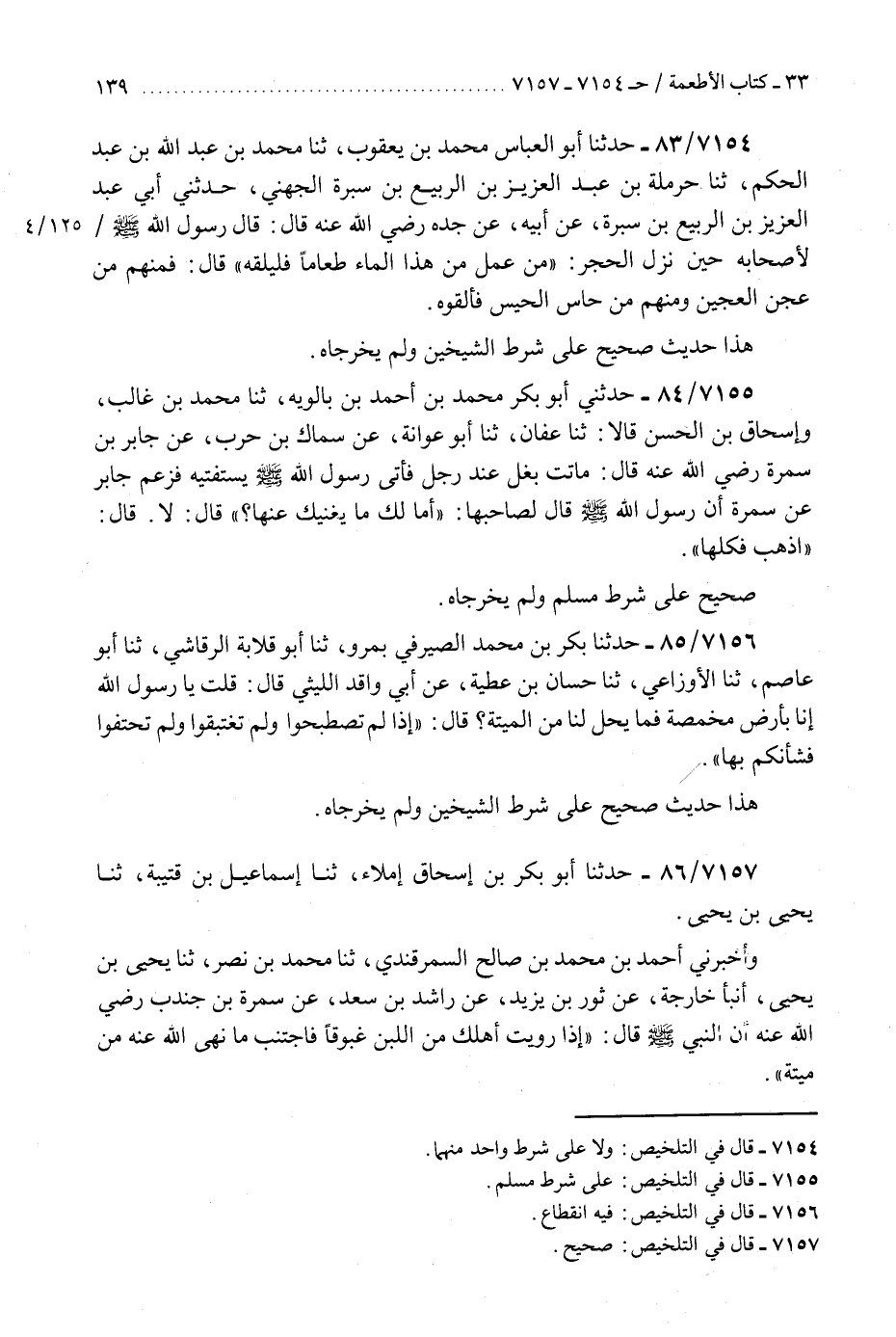 7157 - حَدَّثَنَا أَبُو بَكْرِ بْنُ إِسْحَاقَ، إِمْلَاءً، ثَنَا إِسْمَاعِيلُ بْنُ قُتَيْبَةَ، ثَنَا يَحْيَى بْنُ يَحْيَى، وَأَخْبَرَنِي أَحْمَدُ بْنُ مُحَمَّدِ بْنِ صَالِحٍ السَّمَرْقَنْدِيُّ، ثَنَا مُحَمَّدُ بْنُ نَصْرٍ، ثَنَا يَحْيَى بْنُ يَحْيَى، أَنْبَأَ خَارِجَةُ، عَنْ ثَوْرِ بْنِ يَزِيدَ، عَنْ رَاشِدِ بْنِ سَعْدٍ، عَنْ سَمُرَةَ بْنِ جُنْدُبٍ، رَضِيَ اللَّهُ عَنْهُ أَنَّ النَّبِيَّ صَلَّى اللهُ عَلَيْهِ وَسَلَّمَ قَالَ: §«إِذَا رَوَيْتَ أَهْلَكَ مِنَ اللَّبَنِ غَبُوقًا فَاجْتَنِبْ مَا نَهَى اللَّهُ عَنْهُ مِنْ مَيْتَةٍ» هَذَا حَدِيثٌ صَحِيحُ الْإِسْنَادِ وَلَمْ يُخَرِّجَاهُ وَلَهُ أَصْلٌ بِإِسْنَادٍ صَحِيحٍ عَلَى شَرْطِ الشَّيْخَيْنِ "K7157 - صحيح