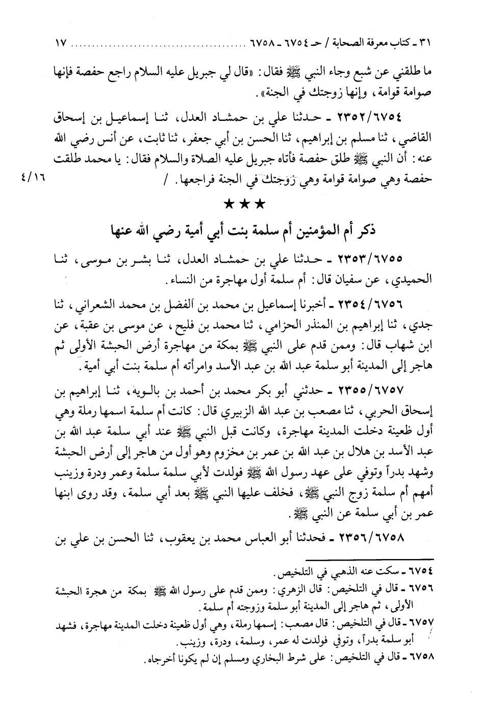 6755 - حَدَّثَنَا عَلِيُّ بْنُ حَمْشَاذٍ الْعَدْلُ، ثنا بِشْرُ بْنُ مُوسَى، ثنا الْحُمَيْدِيُّ، عَنْ سُفْيَانَ، قَالَ: «§أُمُّ سَلَمَةَ، أَوَّلُ مُهَاجِرَةٍ مِنَ النِّسَاءِ»