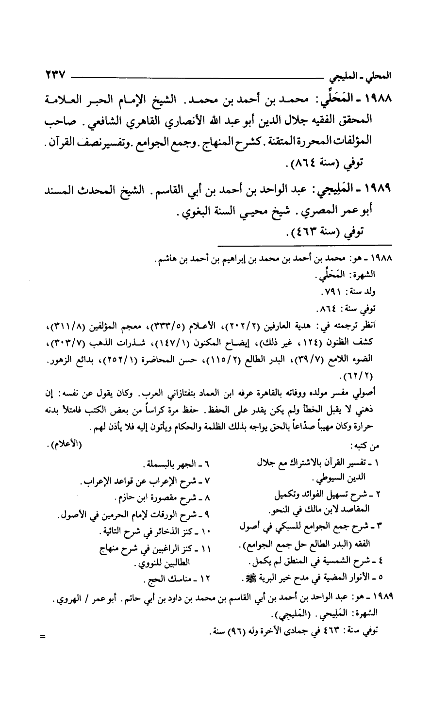 المحلي: محمد بن أحمد بن محمد. الشيخ الإمام الحبر العلامة المحقق الفقيه جلال الدين أبو عبد الله الأنصاري القاهري الشافعي. صاحب المؤلفات المحررة المتقنة. كشرح المنهاج. وجمع الجوامع وتفسير نصف القرآن توفي سنة864.