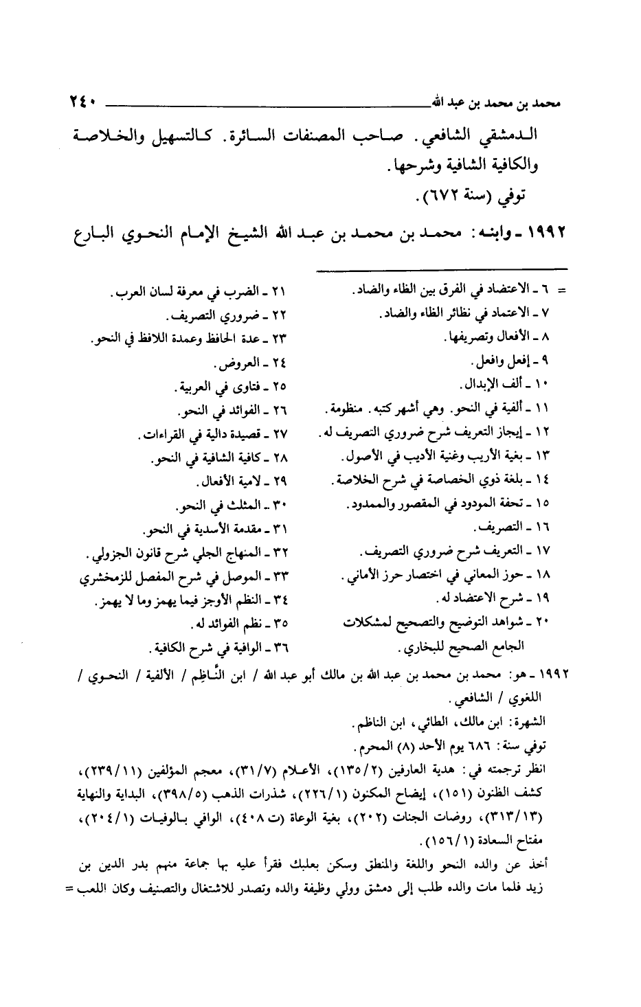 الدمشقي الشافعي. صاحب المصنفات السائرة. كالتسهيل والخلاصة والكافية الشافية وشرحها.