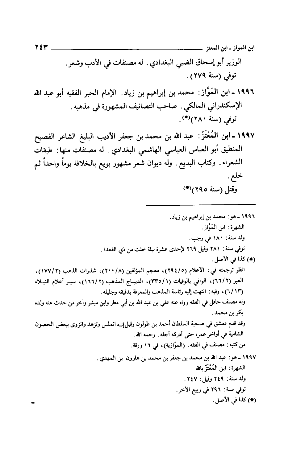 ابن المواز: محمد بن إبراهيم بمن زياد. الإمام الحبر الفقيه أبو عبد الله الإسكندراني المالكي. صاحب التصانيف المشهورة في مذهبه.