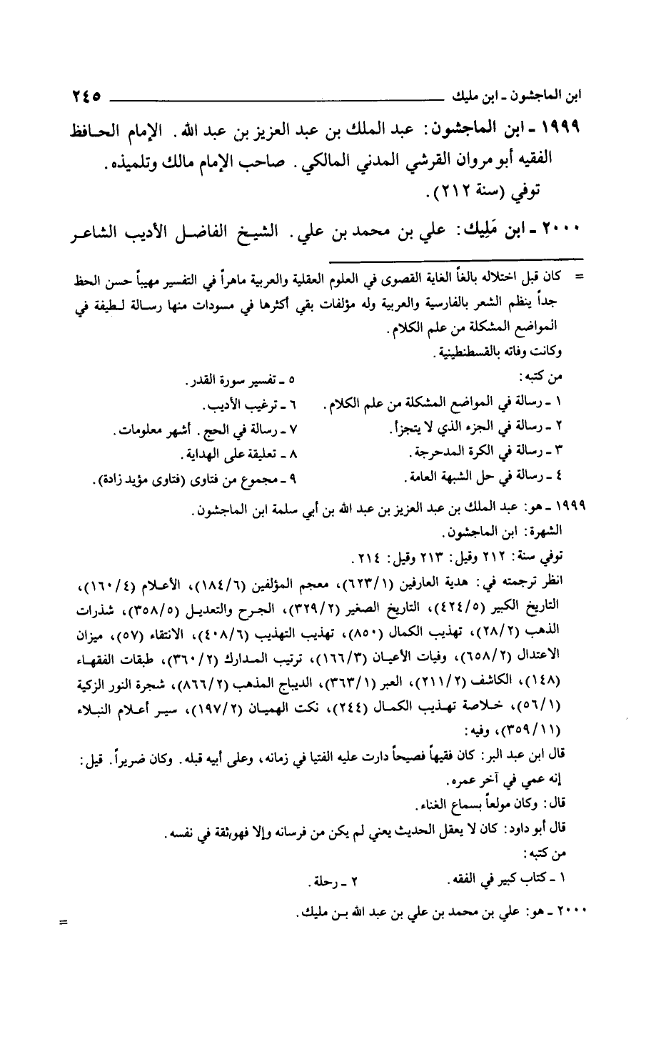 ابن الماجشون: عبد الملك بن عبد العزيز بن عبد الله. الإمام الحافظ الفقيه أبو مروان القرشي المدني المالكي. صاحب الإمام مالك وتلميذه توفي سنة212.