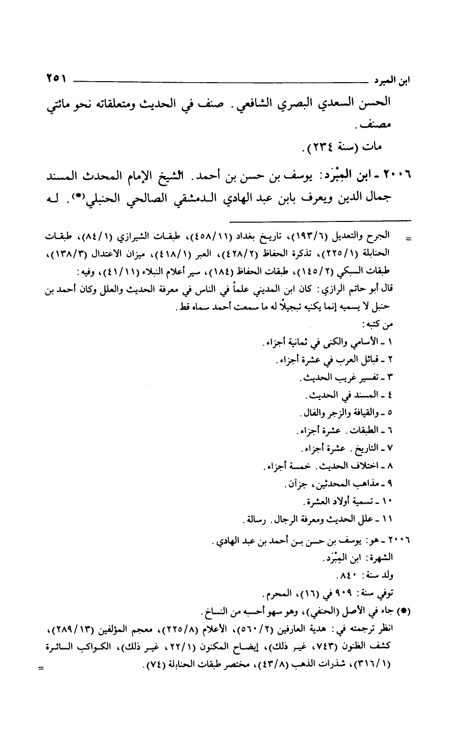 ابن المبرد: يوسف بن حسن بن أحمد. الشيخ الإمام المحدث المسند جمال الدين ويعرف بابن عبد الهادي الدمشقي الصالحي الحنبلي. له