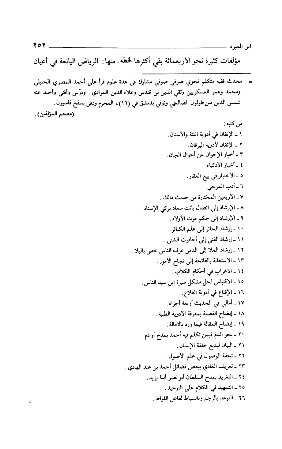 مؤلفات كثيرة نحو الأربعمائة بقي أكثرها لخطه. منها: الرياض اليانعة في أعيان