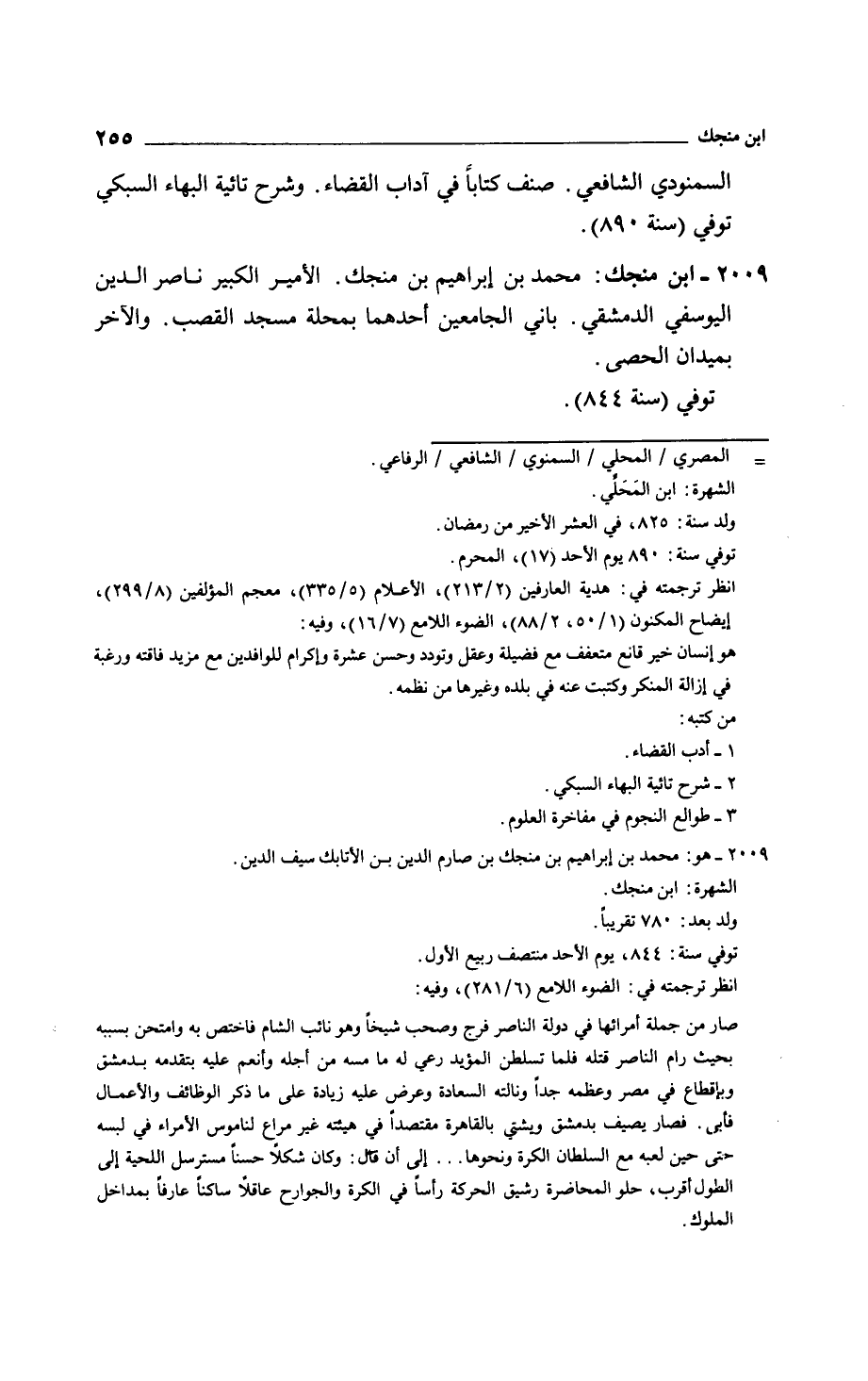 ابن منجك: محمد بن إبراهيم بن منجك. الأمير الكبير ناصر الدين اليوسفي الدمشقي. باني الجامعين أحدهما بمحلة مسجد القصب. والآخر بميدان الحصى.