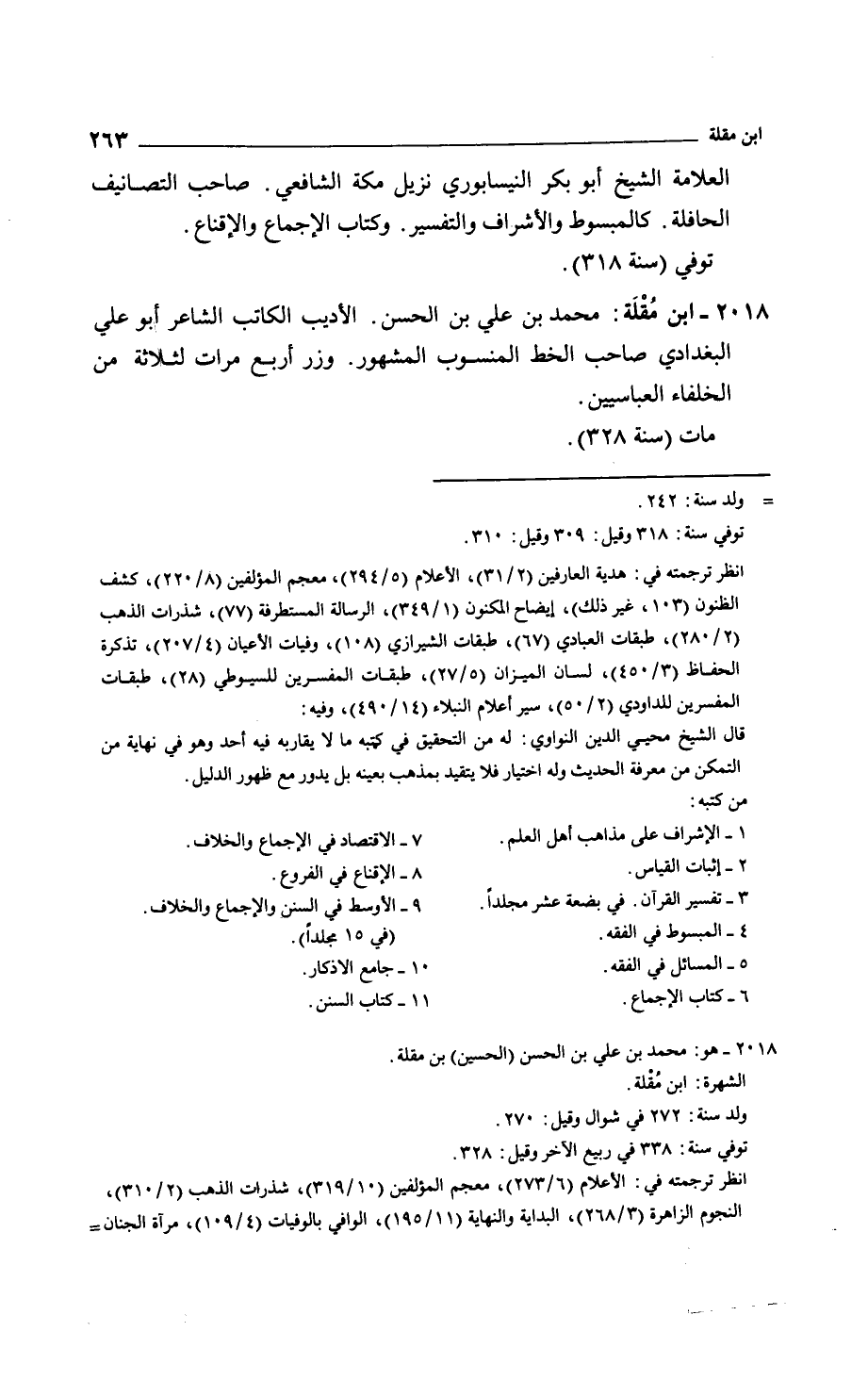 العلامة الشيخ أبو بكر النيسابوري نزيل مكة الشافعي. صاحب التصانيف الحافلة. كالمبسوط والأشراف والتفسير. وكتاب الإجماع والإقناع.
