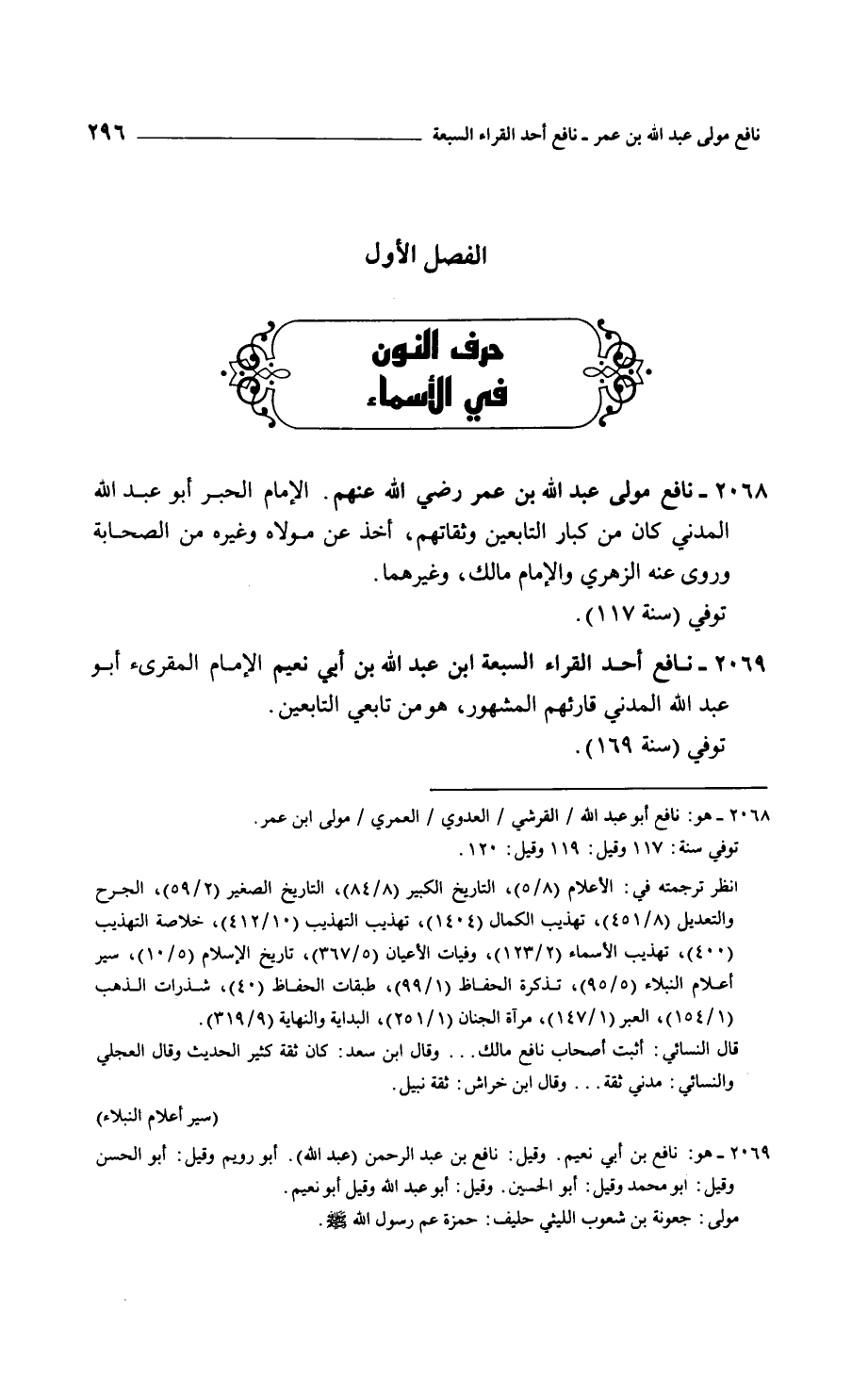 نافع مولى عبد الله بن عمر رضي الله عنهم. الإمام الحبر أبو عبد الله المدني كان من كبار التابعين وثقاتهم، أخذ عن مولاه وغيره من الصحابة وروى عنه الزهري والإمام مالك، وغيرهما.