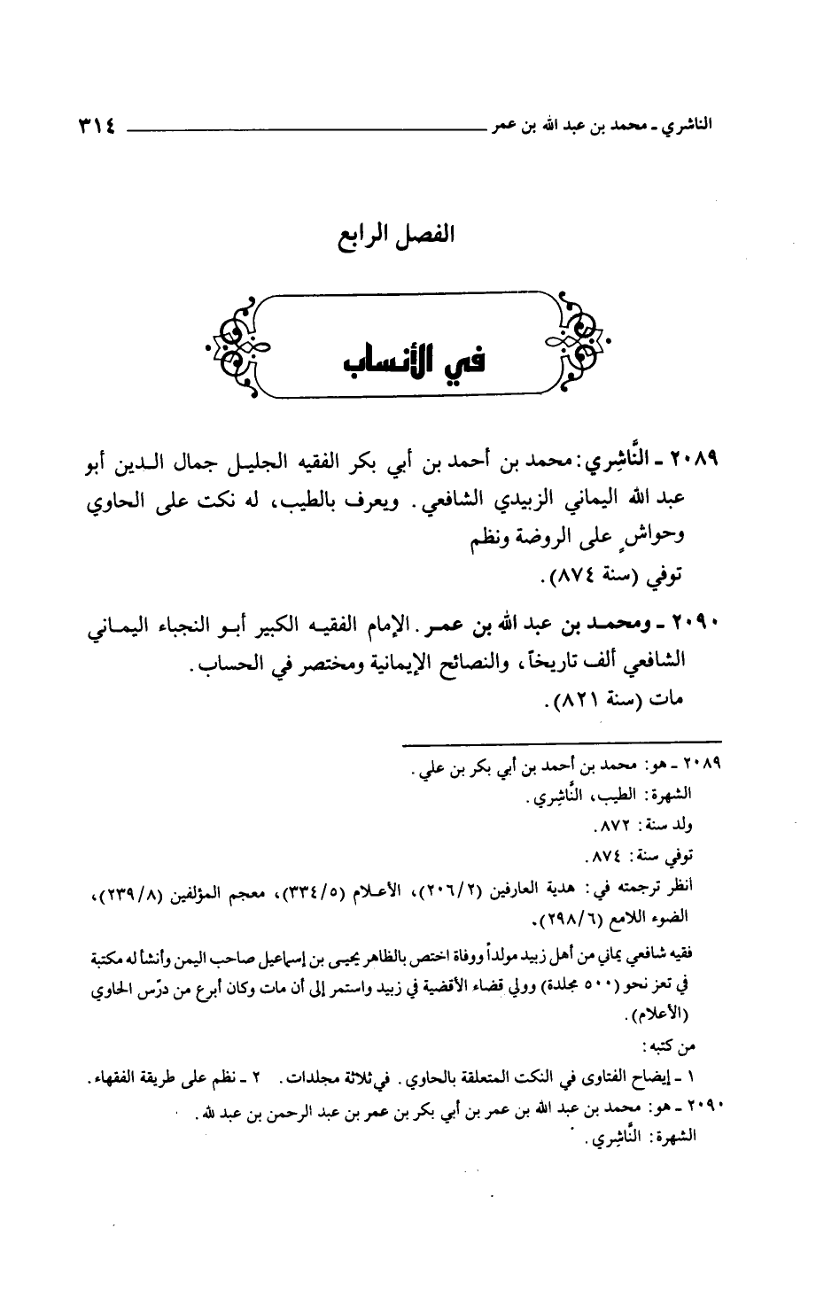 الناشري: محمد بن أحمد بن أبي بكر الفقيه الجليل جمال الدين أبو عبد الله اليماني الزبيدي الشافعي. ويعرف بالطيب، له نكت على الحاوي وحواشٍ على الروضة ونظم توفي سنة874.