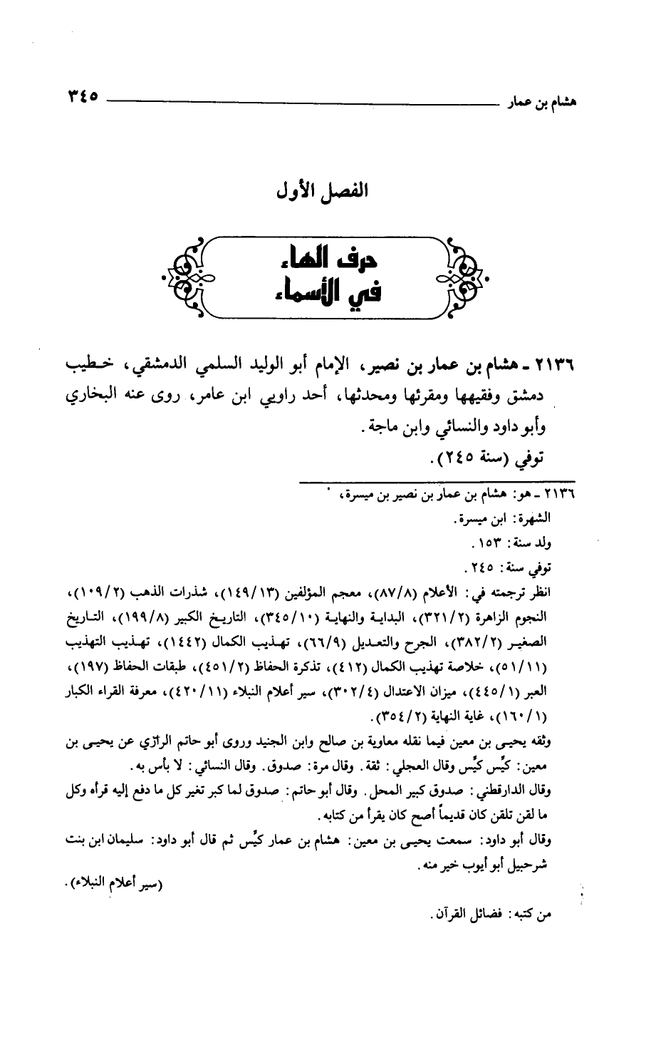 هشام بن عمار بن نصير، الإمام أبو الوليد السلمي الدمشقي خطيب دمشق وفقيهها ومقرئها ومحدثها، أحد راوبي ابن عامر، روى عنه البخاري وأبو داود والنسائي وابن ماجة.