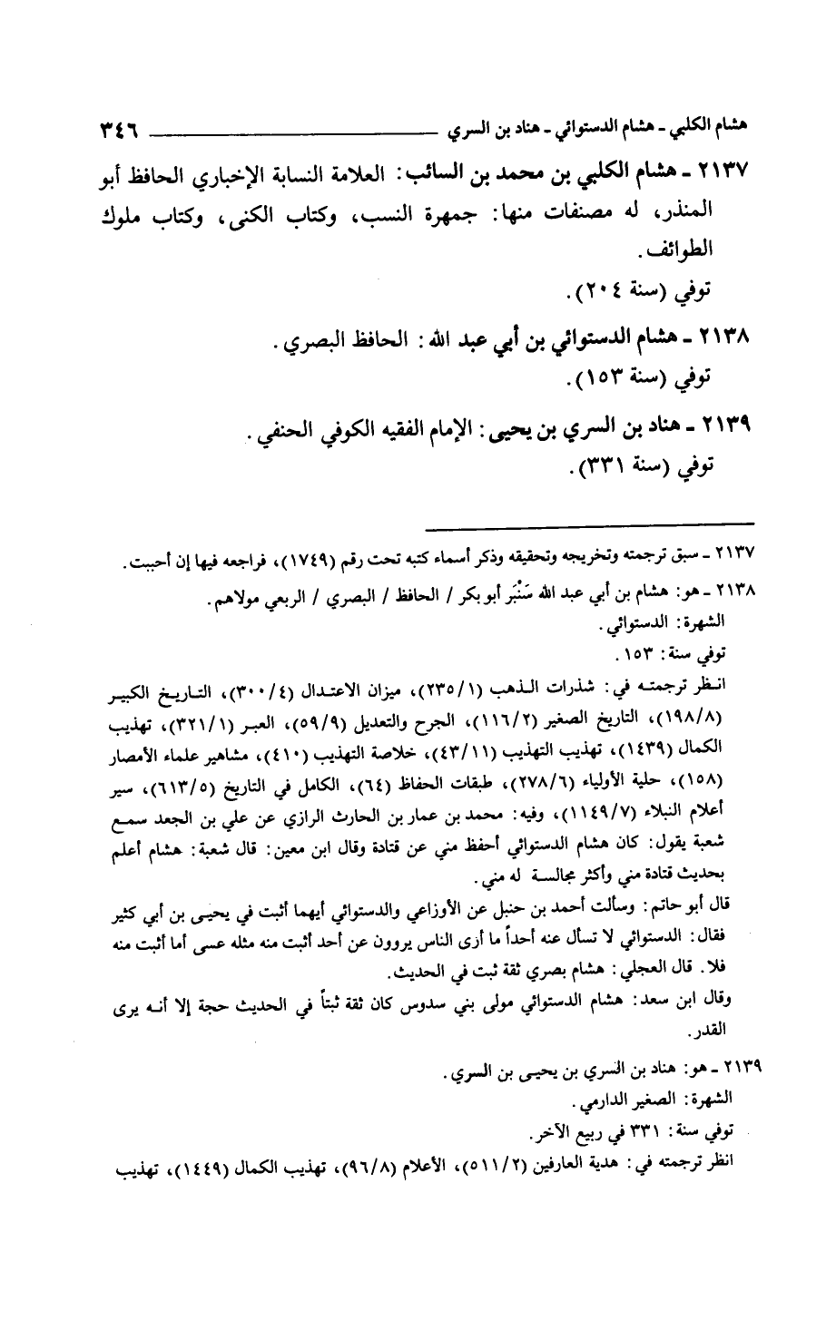 هشام الكلبي بن محمد بن السائب: العلامة النسابة الإخباري الحافظ أبو المنذر، له مصنفات منها: جمهرة النسب، وكتاب الكنى، وكتاب ملوك الطوائف.